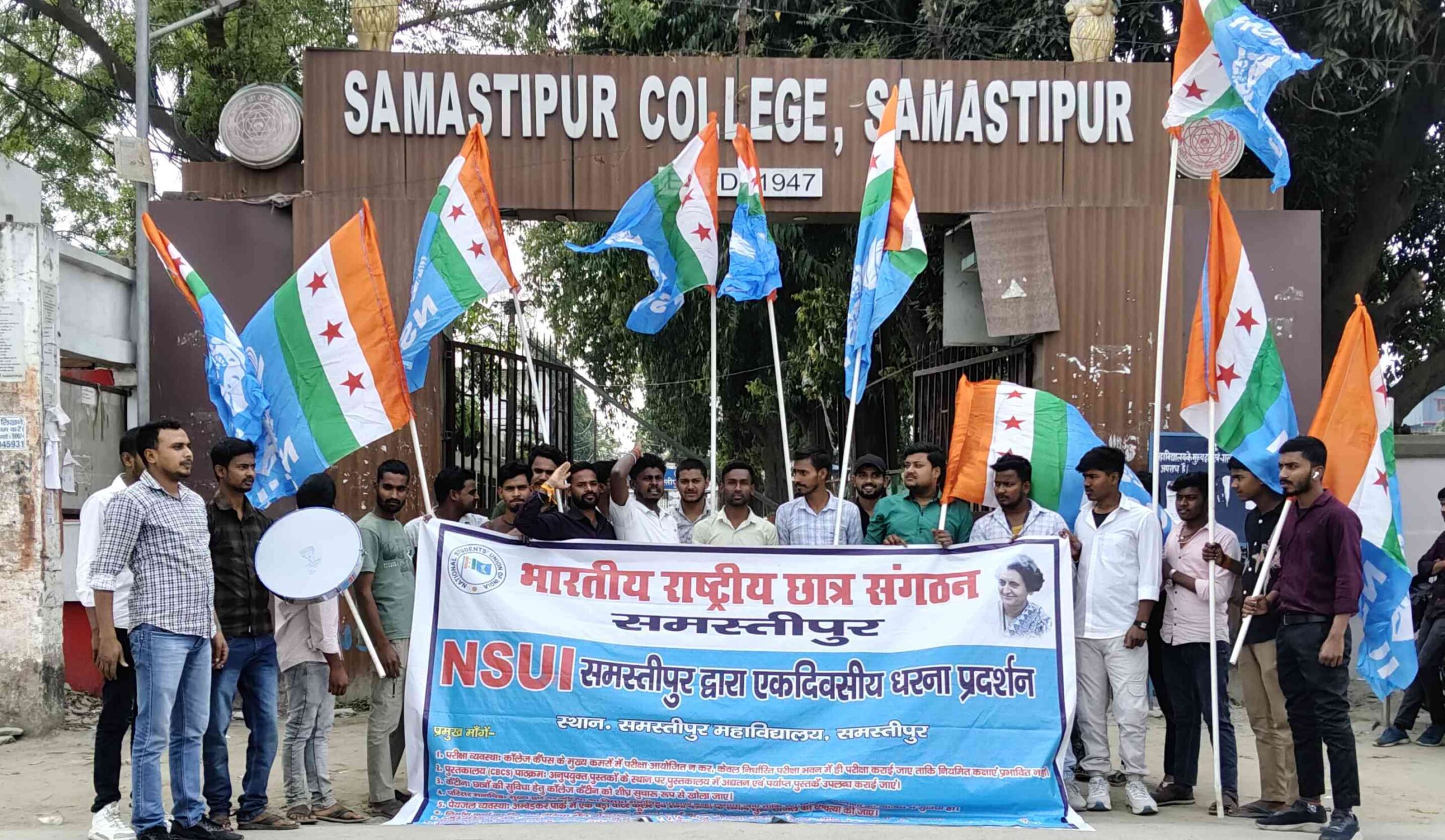 समस्तीपुर कॉलेज में 10 सूत्री मांगों को लेकर NSUI का एकदिवसीय धरना, अनिश्चितकालीन तालाबंदी की चेतावनी