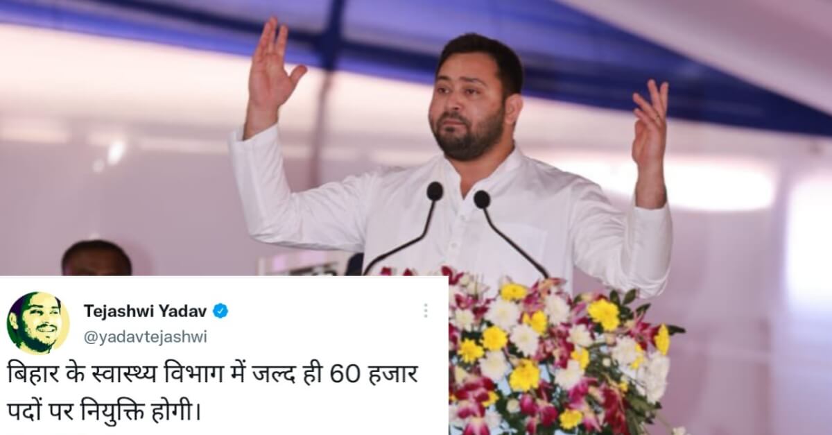 तेजस्वी ने मंच से कर दिया एलान, स्वास्थ्य विभाग में 60 हजार लोगों को मिलेगी सरकारी नौकरी