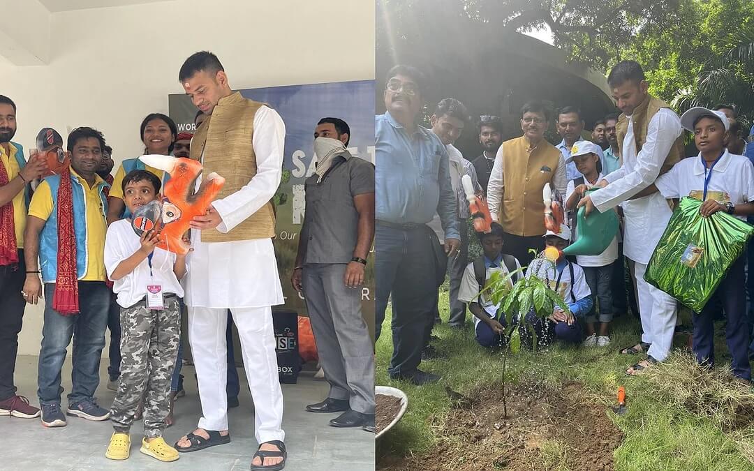 विश्व गैंडा दिवस : तेज प्रताप यादव ने पटना जू परिसर में बच्चों के साथ किया पौधारोपण