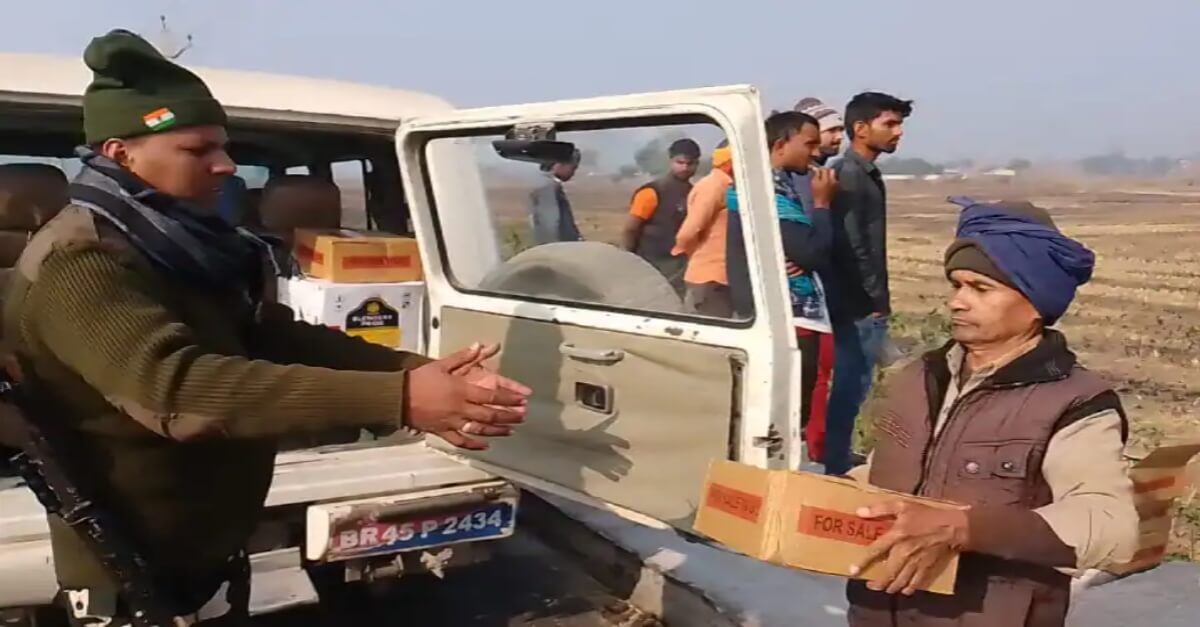 बिहार: शराब से लदी कार पलटी, ग्रामीणों ने बोतलें लूट ली, पुलिस के हाथ आईं कई खाली पेटियां