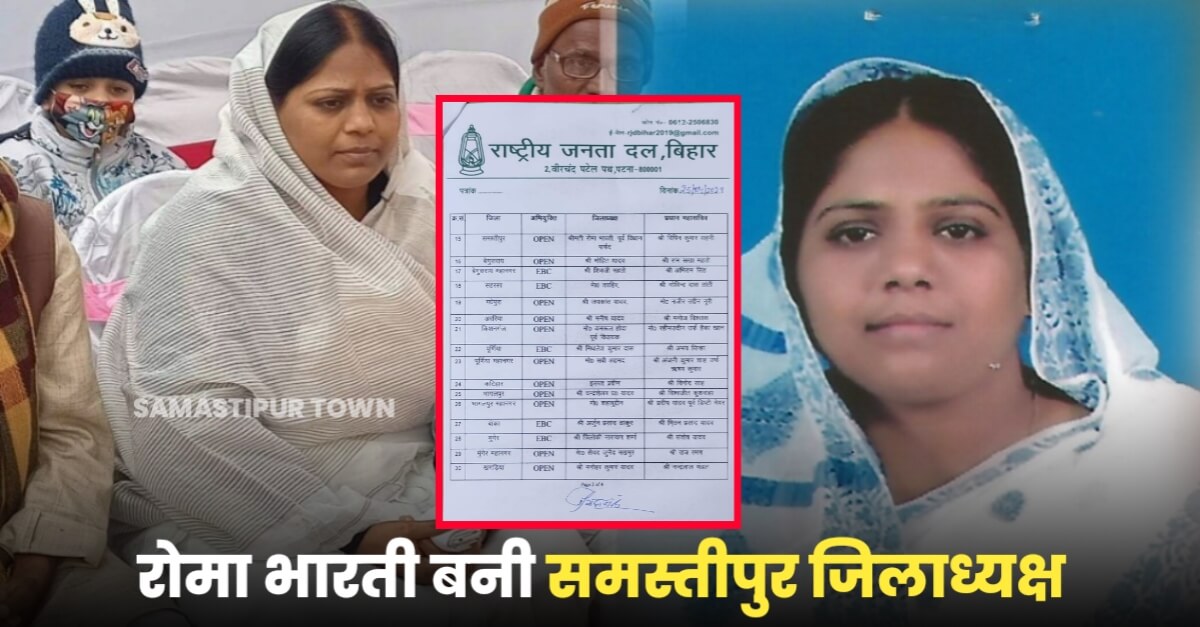 RJD जिलाध्यक्ष और प्रधान महासचिव की सूची जारी, रोमा भारती बनी समस्तीपुर राजद जिलाध्यक्ष
