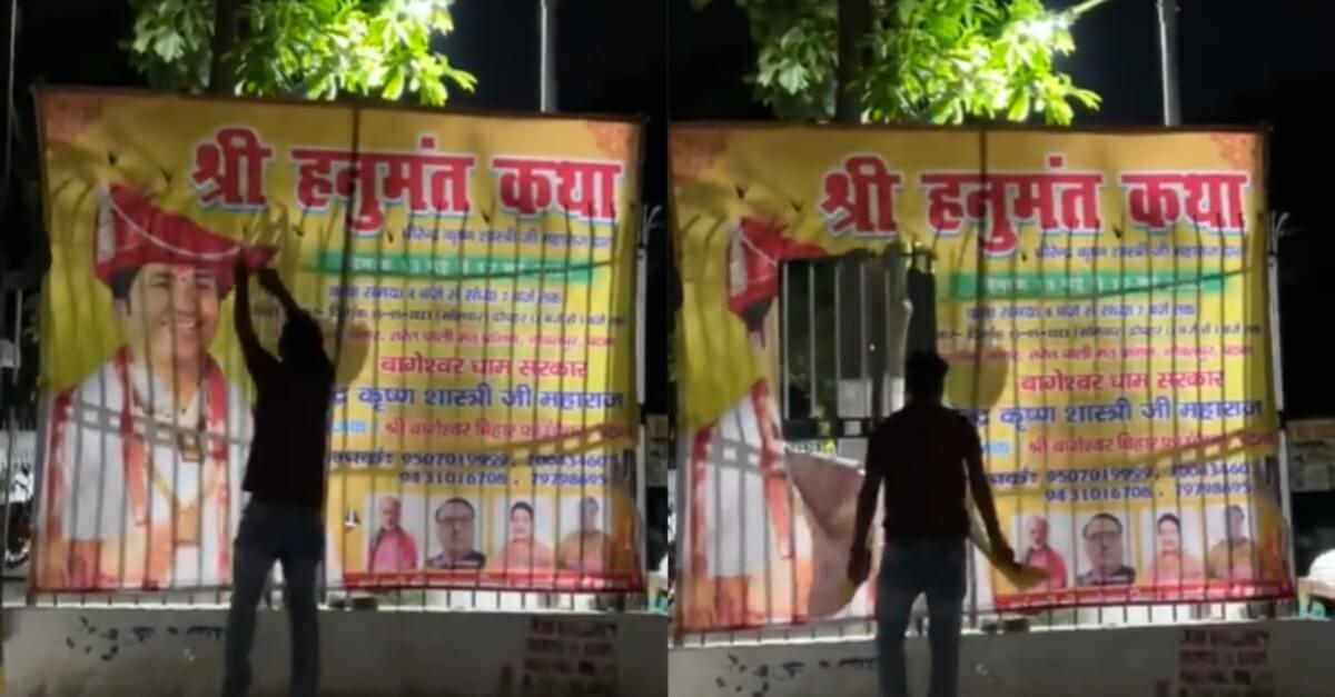 बताया गया है कि रात के अंधेरे में अज्ञात लोगों ने इन पोस्टरों को फाड़ने की घटना को अंजाम दिया है। हालांकि अभी तक किसी ने भी इसकी जिम्मेदारी नहीं ली है। बता दें कि बाबा बागेश्वर धाम धीरेंद्र कृष्ण शास्त्री द्वारा राजधानी पटना के नौबतपुर में 13 मई से 17 मई के बीच हनुमत कथा का आयोजन किया गया है।