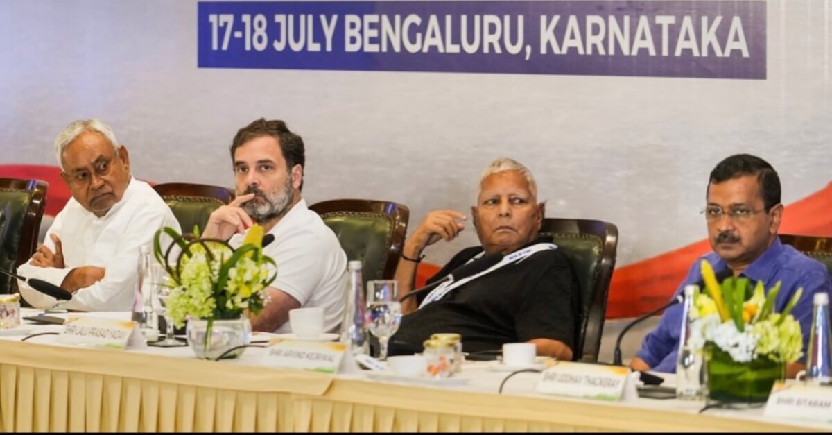 कर्नाटक की राजधानी बेंगलुरु में विपक्षी दलों के गठबंधन को इंडियन नेशनल डेमोक्रेटिक इंक्लूसिव एलायंस (INDIA) नाम दिया गया। दो दिनों तक चली बैठक के बाद कल शाम आयोजित एक प्रेस कॉन्फ्रेंस में इसकी जानकारी दी गई। इस पीसी में विपक्षी दलों के तमाम बड़े नेता शामिल हुए, लेकिन बिहार के मुख्यमंक्षी नीतीश कुमार और आरजेडी सुप्रीमो लालू यादव गैरहाजिर रहे। सूत्रों से मिल रही जानकारी के मुताबिक, गठबंधन का नाम इंडिया रखने पर नीतीश कुमार सहमत नहीं थे। ऐसे में अब उनके विपक्षी को मौका मिल गया है। भारतीय जनता पार्टी (भाजपा) तंज कसने लगी है।