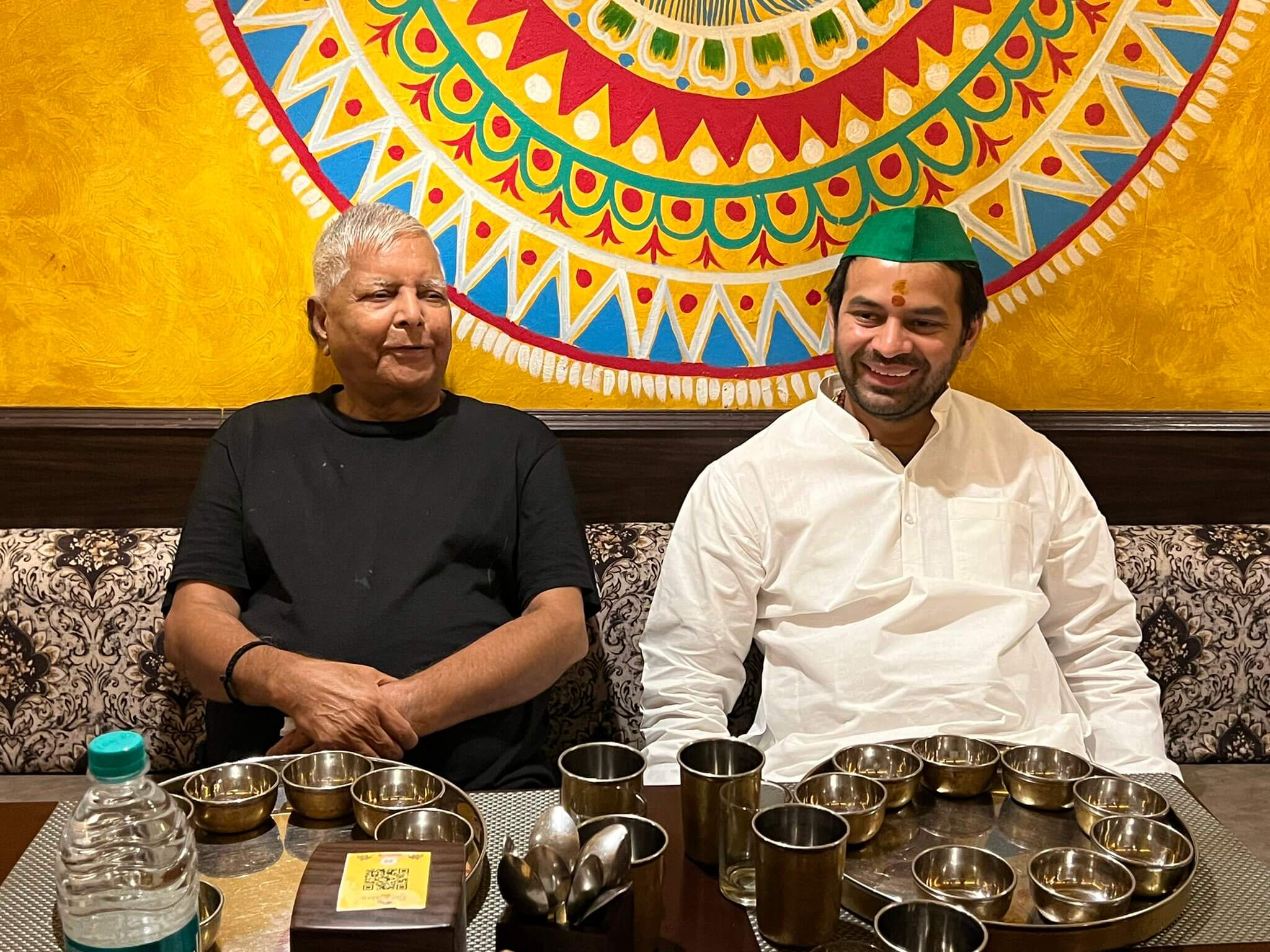सिंगापुर में किडनी ट्रांसप्लांट के सफल ऑपरेशन के बाद से राजद सुप्रीमो लालू यादव काफी एक्टिव नजर आ रहे हैं। फिर चाहे इंडिया गठबंधन की बैठकों में शामिल होना हो, या फिर सैर सपाटा की बात हो। कभी लालू टेनिस खेलते दिखते हैं, तो कभी पटना की सड़कों पर कुल्फी खाते। रविवार की शाम को लालू यादव ने बड़े बेटे तेज प्रताप के साथ राजस्थानी जायके का लुफ्त उठाया। पटना के घुमर होटल में राजद सुप्रीमो लालू यादव ने बेटे संग राजस्थानी थाली का स्वाद चखा। जिसकी तस्वीरें तेज प्रताप ने अपने सोशल मीडिया प्लेटफॉर्म एक्स पर शेयर की है।
