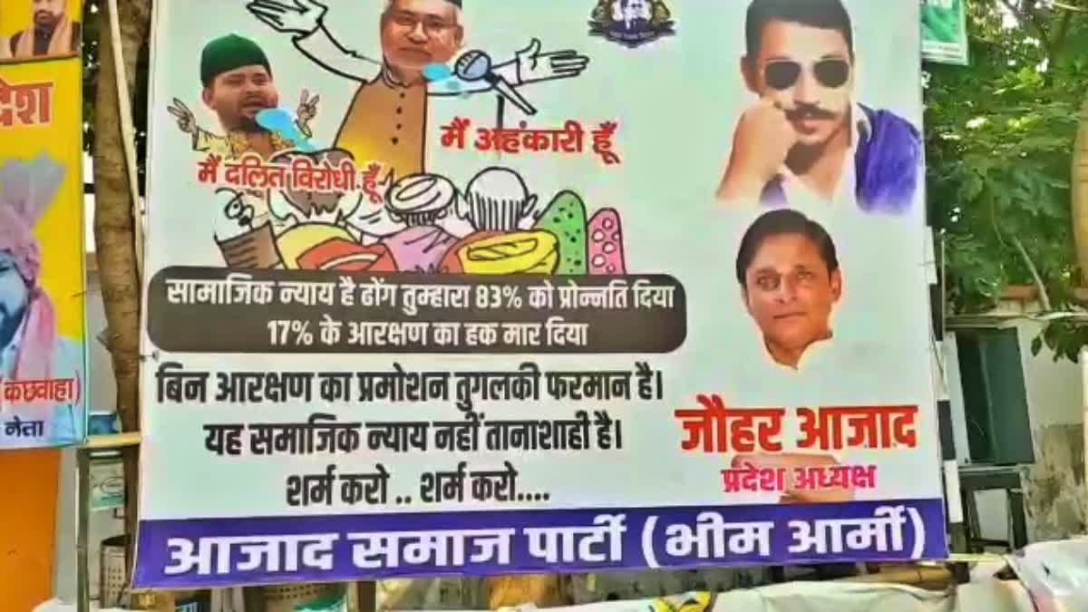 एक तरफ बिहार सरकार की ओर से लगातार प्रमोशन को लेकर की अधिसूचना जारी हो रही है तो दूसरी तरफ इस पर सियासत भी शुरू है. इसे गलत बता कर पिछले दिनों पोस्ट भी लगाए गए थे. भीम आर्मी की तरफ से पोस्टर लगाकर नीतीश कुमार और तेजस्वी यादव पर निशाना साधा गया था, क्योंकि एससी एसटी के आरक्षण में प्रमोशन का मामला अभी सुप्रीम कोर्ट में लटका हुआ है और सरकार ने सुप्रीम कोर्ट के फैसले से पहले ही प्रमोशन का रास्ता साफ कर दिया है. हालांकि 6 साल से भी अधिक समय से प्रमोशन कर्मचारी और अधिकारियों का रुका हुआ था उसके बाद सरकार के तरफ से यह फैसला लिया गया है.