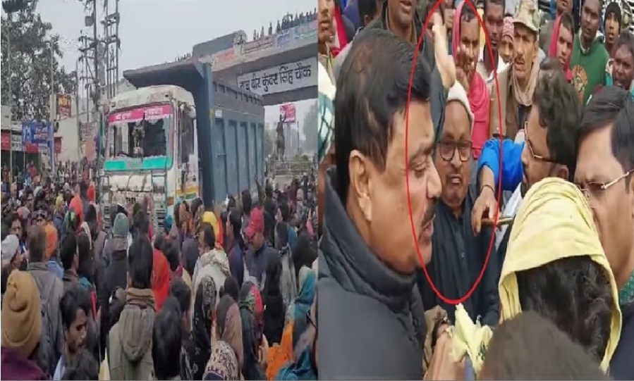 दरअसल, शनिवार की सुबह औद्योगिक थाना क्षेत्र के जीरोमाइल चौक पर साइकिल सवार एक बुजुर्ग को तेज रफ्तार ट्रक ने दिया था। बुजुर्ग की मौत के बाद आक्रोशित परिजनों ने जीरोमाइल से सबौर जाने वाली मुख्य सड़क को जामकर मुआवजे की मांग कर रहे थे। तीन घंटे तक लोगों ने मुख्य मार्ग को पूरी तरह बाधित कर दिया। इसी बीच विधायक गोपाल मंडल भी लोगों से मुलाकात करने पहुंचे। मृतक के परिजनों द्वारा विधायक गोपाल मंडल के सामने मुआवजे की मांग लेकर प्रदर्शन करने लगे। इसी बीच अचानक गोपाल मंडल ने एक शख्स को थप्पड़ मार दिया।