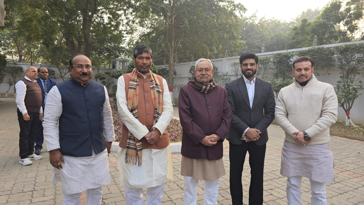 NDA की नई सरकार के गठन और नीतीश कुमार के 9वीं बार मुख्यमंत्री बनने के बाद केंद्रीय मंत्री पशुपति पारस मिलने पहुंचे। सांसद प्रिंस राज, सांसद चंदन सिंह, विधान पार्षद भूषण राय के साथ पशुपति पारस आज नीतीश कुमार से मिलने मुख्यमंत्री आवास पहुंचे और सीएम नीतीश को बधाई दी। सीएम से मिलने के बाद पशुपति पारस ने भतीजे चिराग पासवान पर हमला बोला।