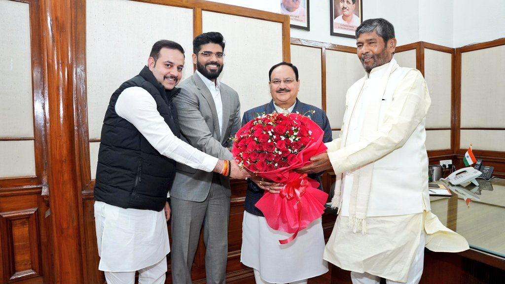 केंद्रीय मंत्री एवं राष्ट्रीय लोक जनशक्ति पार्टी (आरएलजेपी) के प्रमुख पशुपति कुमार पारस ने लोकसभा चुनाव से पहले अपनी पार्टी के दावों को आगे बढ़ाने के लिए गुरुवार को दिल्ली में भारतीय जनता पार्टी (भाजपा) के राष्ट्रीय अध्यक्ष जेपी नड्डा से मुलाकात की। पारस के साथ उनकी पार्टी के तीन अन्य लोकसभा सांसद, चौधरी महबूब अली कैसर, चंदन सिंह व प्रिंसराज, भी थे। पार्टी के राष्ट्रीय प्रवक्ता श्रवण कुमार अग्रवाल ने यह जानकारी देते हुए बताया पशुपति पारस और तीनों सांसदों की भाजपा अध्यक्ष से तीस मिनट की बेहद ही सौहार्दपूर्ण मुलाकात हुई। इस दौरान बिहार में लोकसभा चुनाव को लेकर एनडीए की रणनीति के अलावा कई अहम मुद्दों पर भी बात हुई। साथ ही लोकसभा चुनाव में बिहार की सभी 40 सीटों पर एनडीए की जीत सुनिश्चित कराने को लेकर रणनीति पर भी चर्चा हुई।