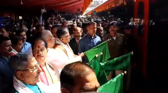 नरेंद्र मोदी की केंद्र सरकार ने बिहार को दो नए वंदे भारत एक्सप्रेस की सौगात दी है। प्रधानमंत्री ने वर्चुअली हरी झंडी दिखाकर इन ट्रेनों का उद्घाटन किया वहीं भाजपा सांसद रविशंकर प्रसाद ने कई बीजेपी नेताओं की मौजूदगी में पटना पटना जंक्शन पर हरी झंडी दिखाकर इन्हें रवाना किया। पीएम ने इस मौके पर देश को 10 नए वंदे भारत एक्सप्रेस का तोहफा भी दिया। इतना ही नहीं उन्होंने हजारों करोड़ की रेलवे परियोजनाओं की सौगात भी दी। कार्यक्रम के दौरान डिप्टी सीएम विजय कुमार चौधरी, विधानसभा अध्यक्ष नंदकिशोर यादव, राज्यसभा सदस्य शंभू शरण पटेल, जीएम तरुण प्रकाश, विधायक नितिन नवीन, नगर निगम की उप मुख्य पार्षद रश्मि चंद्रवंशी मौजूद रहे। भाजपा नेताओं ने कहा कि इससे बिहार, झारखंड और यूपी वासियों को रामलला का दर्शन करना आसान हो जाएगा।
