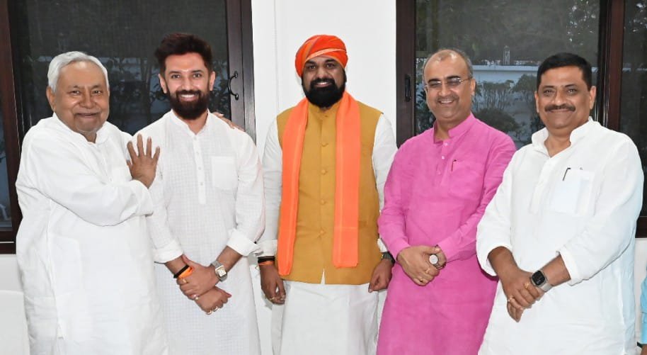 लोकसभा चुनाव को लेकर रणभेरी बज चुकी है। नामांकन का दौर भी शुरू हो गया है। इस बीच बिहार के मुख्यमंत्री नीतीश कुमार से NDA के बड़े नेताओं के मिलने का दौर भी जारी है। गिरिराज सिंह, उपेन्द्र कुशवाहा और रामकृपाल यादव के बाद गुरुवार को लोजपा (रामविलास) के सुप्रीमो चिराग पासवान ने भी मुख्यमंत्री नीतीश कुमार से मुलाकात की है।