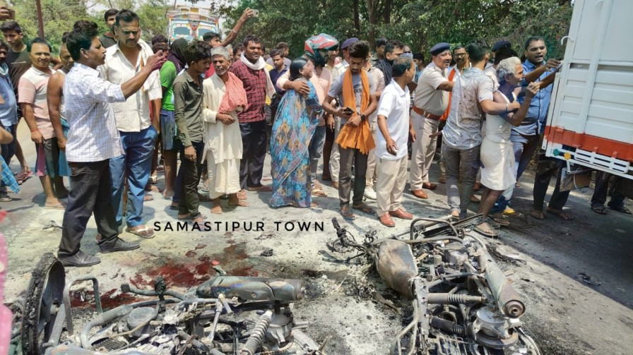 बिहार सहित देश के कई हिस्सों में आसमान से आग बरस रही है। लगातार बढ़ रही गर्मी के कारण आए दिन कार और बाइक तक में आग लगने की खबरें आ रही हैं। बेगूसराय में दो बाइक में आग लग गई। बाइक में आग लगने की वजह से दोनों युवक जिंदा जल गए हैं। घटना बेगूसराय के फसल थाना क्षेत्र का है। बेगूसराय मुफस्सिल थाना क्षेत्र के 55 खम्हार गौतम धाम के निकट आमने सामने दो बाइक की टक्कर में दो व्यक्ति की जिंदा जलकर दर्दनाक मौत हो गई है। दो व्यक्ति घायल हुए हैं जिनको पुलिस ने इलाज के लिए अस्पताल भेजा है।