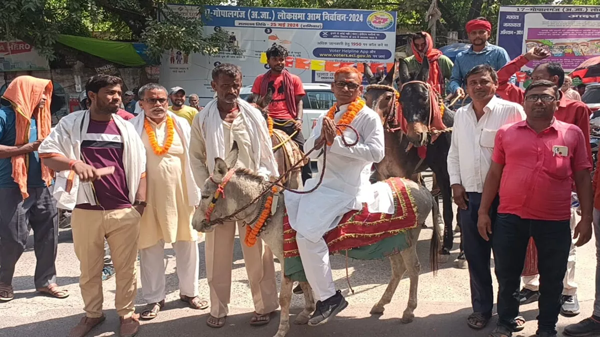 बिहार के गोपालगंज में गधे पर चढ़कर नामांकन दाखिल करने पहुंचा निर्दलीय प्रत्याशी, लोगों की लगी भीड़