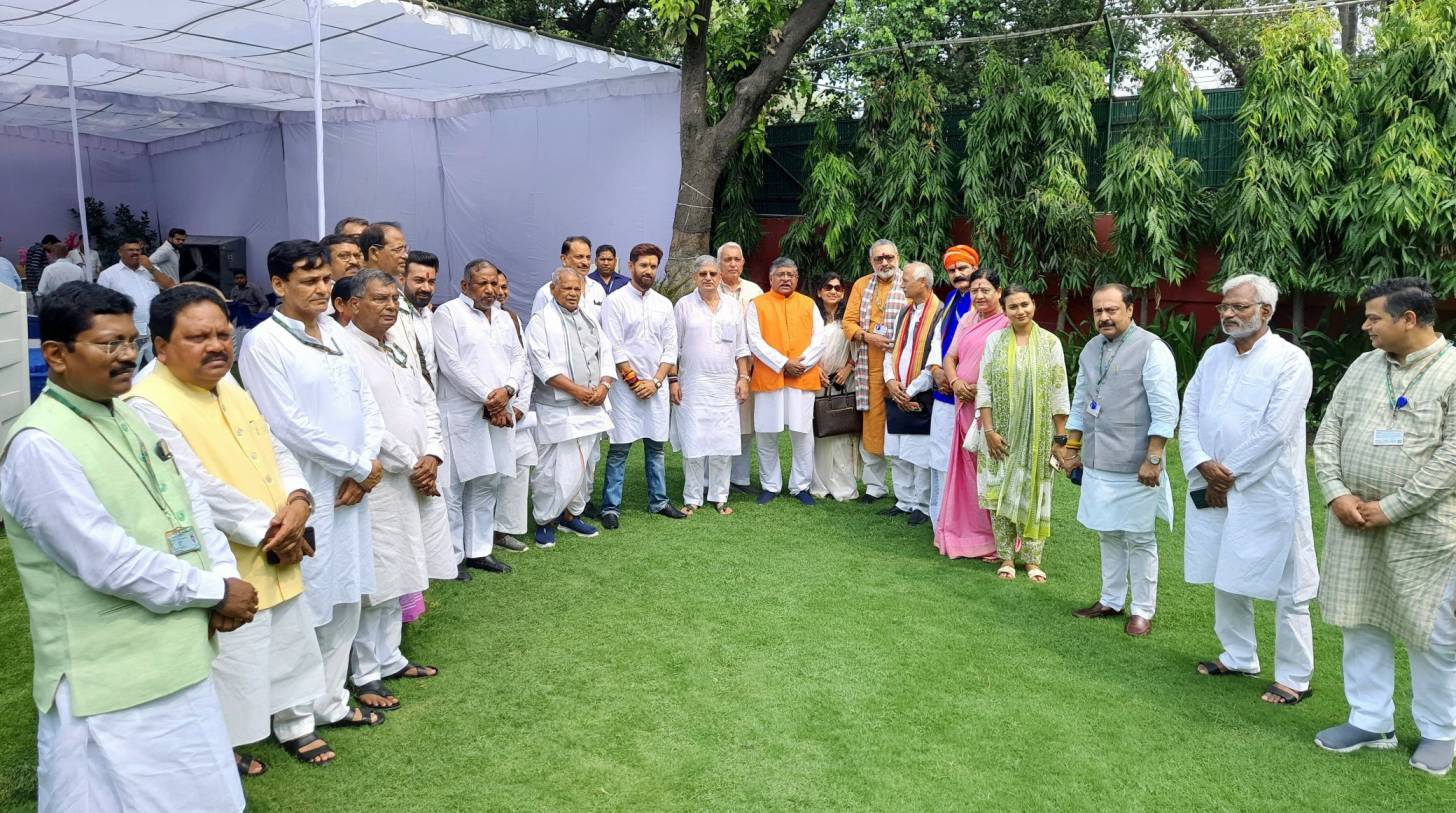 केंद्रीय पंचायती राज मंत्री ललन सिंह के दिल्ली आवास पर बुधवार को बिहार के सभी एनडीए सांसद पहुंचे। लोकसभा की कार्यवाही शुरू होने के ठीक पहले सभी सांसद वहां पहुंचे थे। इनमें भाजपा, जदयू, लोजपा(आर) और हम के सांसद शामिल थे। केंद्रीय मंत्री भूपेंद्र यादव भी थे। भाजपा सांसद संजय जायसवाल ने बताया कि मंत्री बनने के बाद बिहार के सभी सांसदों को ललन सिंह ने नाश्ते पर बुलाया था। मीडिया द्वारा पूछे गए एक सवाल पर उन्होंने कहा कि यहां पर सासंदों के आने का लोकसभा अध्यक्ष के चुनाव से कोई संबंध नहीं था।