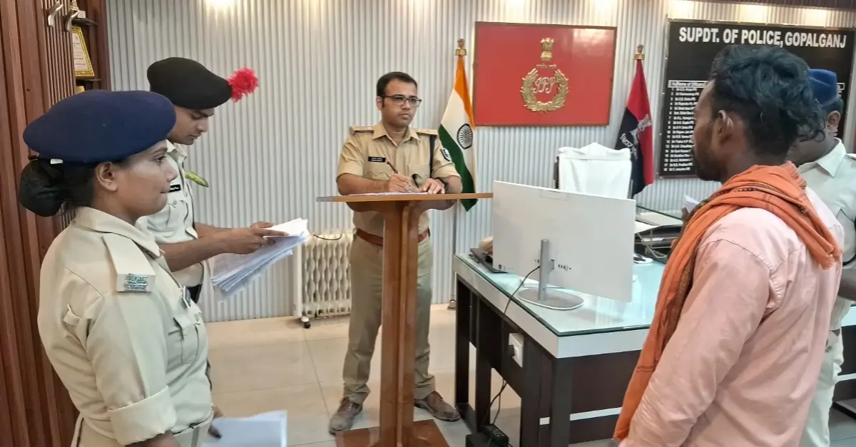 पुलिस अधीक्षक के आदेश पर जिला बल के हवलदार उपेंद्र पांडेय विरुद्ध प्राथमिकी दर्ज करायी गयी। जांच के दौरान इस मामले में पांडेय की संलिप्तता पायी गयी। नगर थाना क्षेत्र के एकडेरवा गांव निवासी होमगार्ड जवान भोला यादव को घर से होमगार्ड कार्यालय थावे जाने के दौरान रास्ते में संजय उर्फ बनरी ने अपने साथियों के साथ मिलकर गोली मारकर हत्या कर दी थी। पांच जनवरी, 2021 को हुई इस हत्या के मामले में पुलिस ने संजय उर्फ बनरी को गिरफ्तार कर लिया। जेल से कोर्ट में पेशी के लिए लाये जाने के दौरान इस साल 19 जनवरी को वह फरार हो गया। मामले की जांच में जिला बल के हवलदार उपेंद्र पांडेय की संलिप्तता पायी गयी।