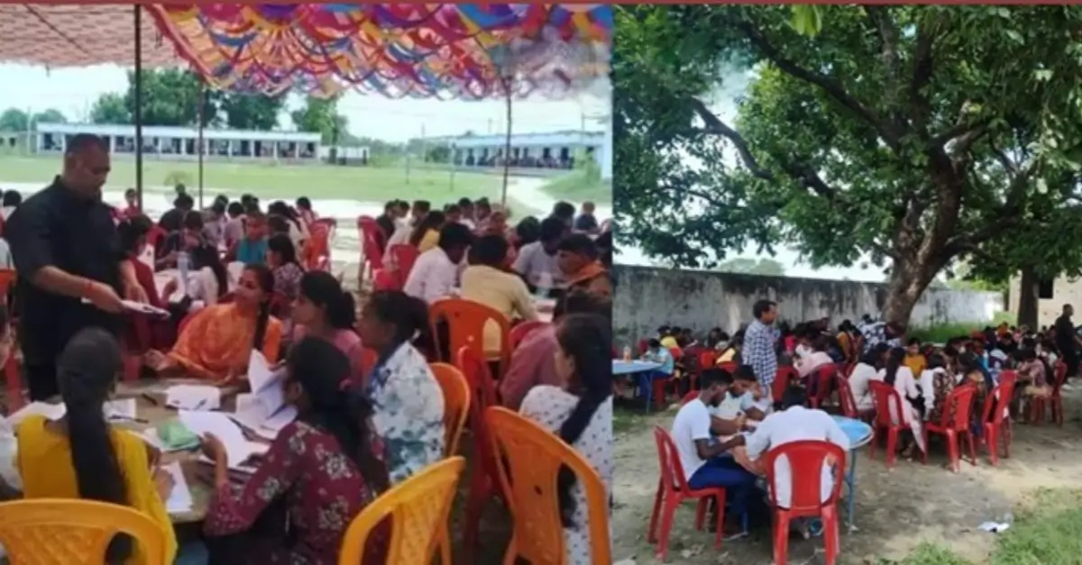 दरअसल, शनिवार को छपरा के प्रभुनाथ महाविद्यालय परसा परीक्षा केंद्र में स्नातक सीबीसीएस सत्र 2023-27 प्रथम सेमेस्टर की परीक्षा का आयोजन किया गया था। लेकिन परीक्षा का आयोजन ऐसा किया गया था जिसे देखकर लग रहा था कि वहां सामूहित भोज चल रही हो। हम ऐसा इसलिए कह रहे क्योंकि, मल्टी डिसिप्लिनरी कोर्स (एमडीसी) की परीक्षा में प्रभुनाथ महाविद्यालय परसा परीक्षा केंद्र में परीक्षार्थियों की चिलचिलाती धूप में टेंट के नीचे एवं पेड़ के नीचे कुर्सी टेबल लगाकर भोज की तरह परीक्षा ली गई। इसके अलावा बरामदे, सीढ़ी घर के नीचे, जिसे जहां जगह मिली वहां जैसे तैसे बैठकर परीक्षार्थियों ने परीक्षा दी।