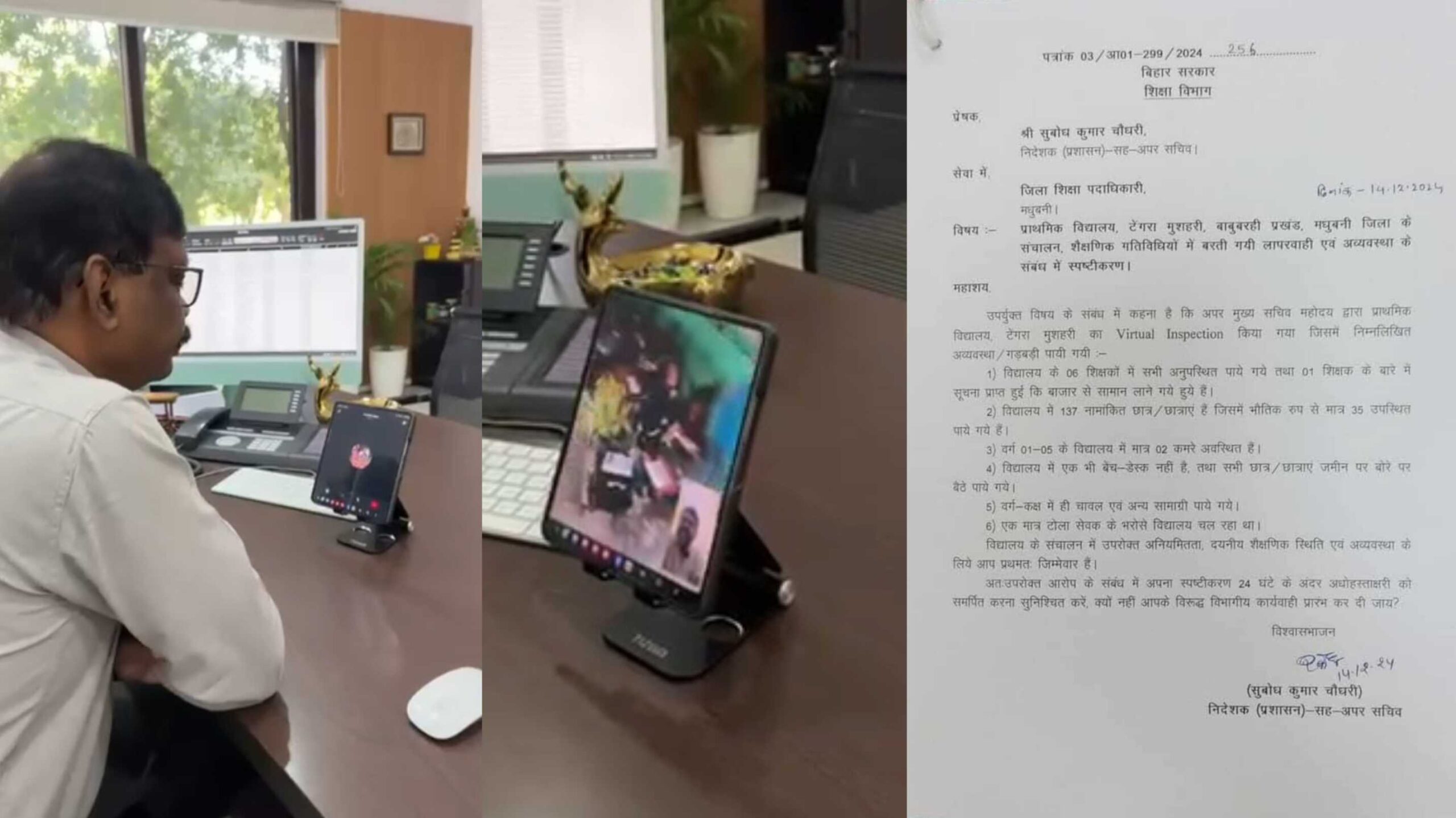 शिक्षा विभाग के अपर मुख्य सचिव के आदेश पर निदेशक (प्रशासन) सुबोध कुमार चौधरी ने इस संबंध में मधुबनी के जिला शिक्षा पदाधिकारी को पत्र भेजा है. जिसमें कहा गया है कि बाबू बरही प्रखंड के प्राथमिक विद्यालय टेंगरा मुसहरी के संचालन, शैक्षणिक गतिविधि में बरती गई लापरवाही एवं अव्यवस्था के संबंध में 24 घंटे में स्पष्टीकरण दें, क्यों न आपके खिलाफ कार्रवाई की जाए?