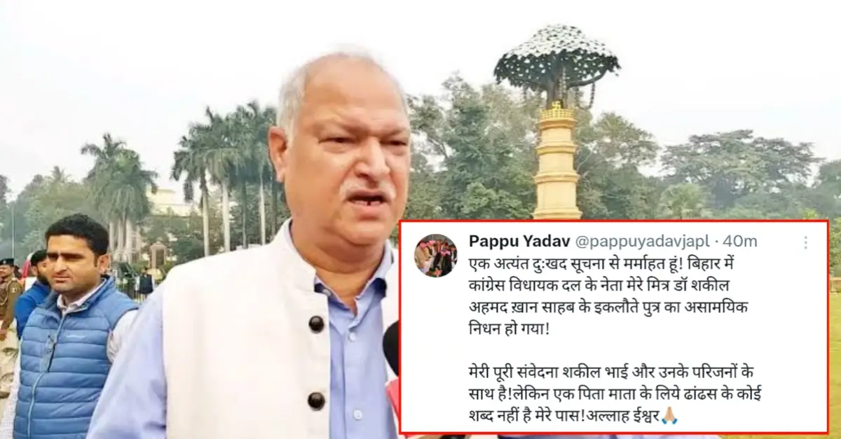 सांसद पप्पू यादव ने X पर लिखा है कि ‘एक अत्यंत दुःखद सूचना से मर्माहत हूं। बिहार में कांग्रेस विधायक दल के नेता मेरे मित्र डॉ. शकील अहमद ख़ान साहब के इकलौते पुत्र का असामयिक निधन हो गया। मेरी पूरी संवेदना शकील भाई और उनके परिजनों के साथ है, लेकिन एक पिता माता के लिये ढांढस के कोई शब्द नहीं है मेरे पास।’