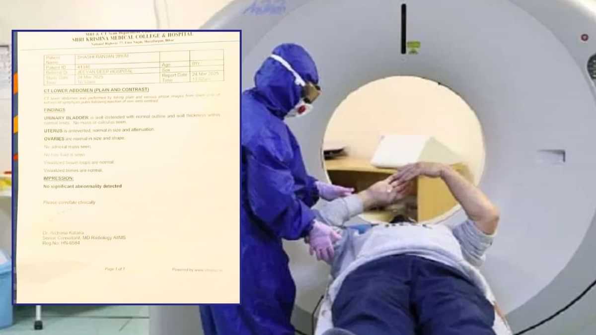 बिहार के मुजफ्फरपुर से हैरान करने वाला मामला सामने आया है. यहां सीटी स्कैन सेंटर पर बड़ी लापरवाही कर दी. पुरुष मरीज ने जांच कराई, जब उसे रिपोर्ट मिली तो वह चौंक गया. उसकी रिपोर्ट में उसके पेट मे बच्चेदानी पाई गई. रिपोर्ट देख मरीज सकते में पड़ गया. उसकी रिपोर्ट सोशल मीडिया पर वायरल हो रही है. मामला एसकेएमसीएच स्थित एक सिटी स्कैन सेंटर का है.