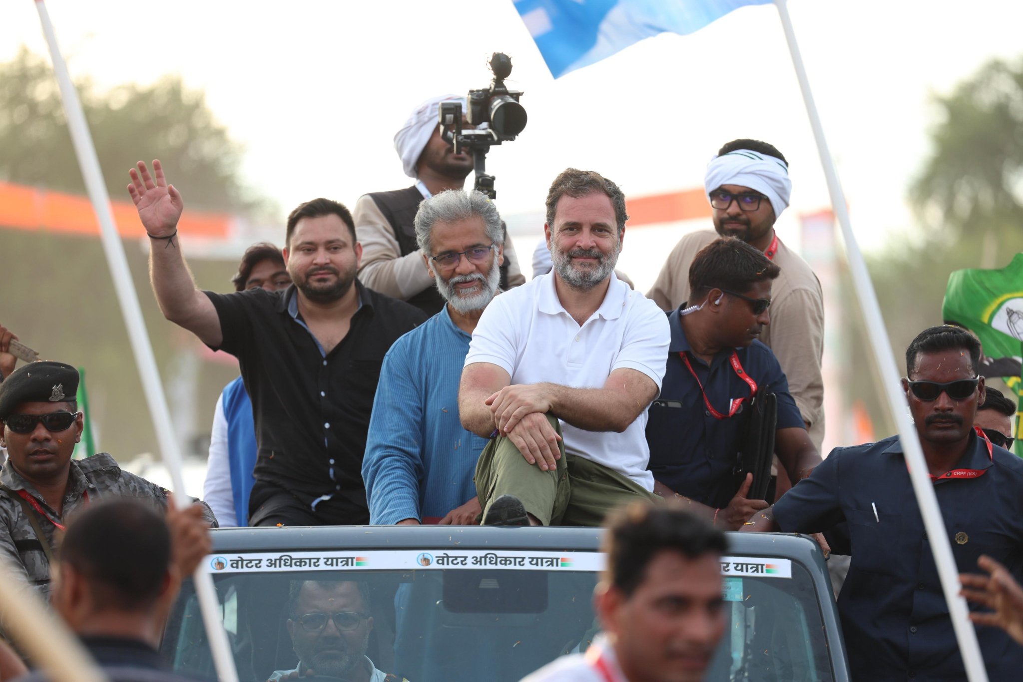 इससे पहले राहुल गांधी ने गया में जनसभा को संबोधित करते हुए मंच पर दशरथ मांझी के परिवार को घर की चाबी सौंपी। जनसभा में अचानक बारिश शुरू हो गई, लेकिन भीगते हुए भीड़ डटी रही और तालियों व नारों से नेताओं का स्वागत किया। राहुल ने कहा कि यह बारिश जनता के आशीर्वाद का संकेत है। उन्होंने केंद्र सरकार पर वो चोरी का आरोप लगाते हुए महंगाई, बेरोजगारी और किसानों की बदहाली पर भाजपा को घेरा। सभा में मौजूद राजद नेता तेजस्वी यादव ने विपक्षी दलों पर भी सवाल उठाए।