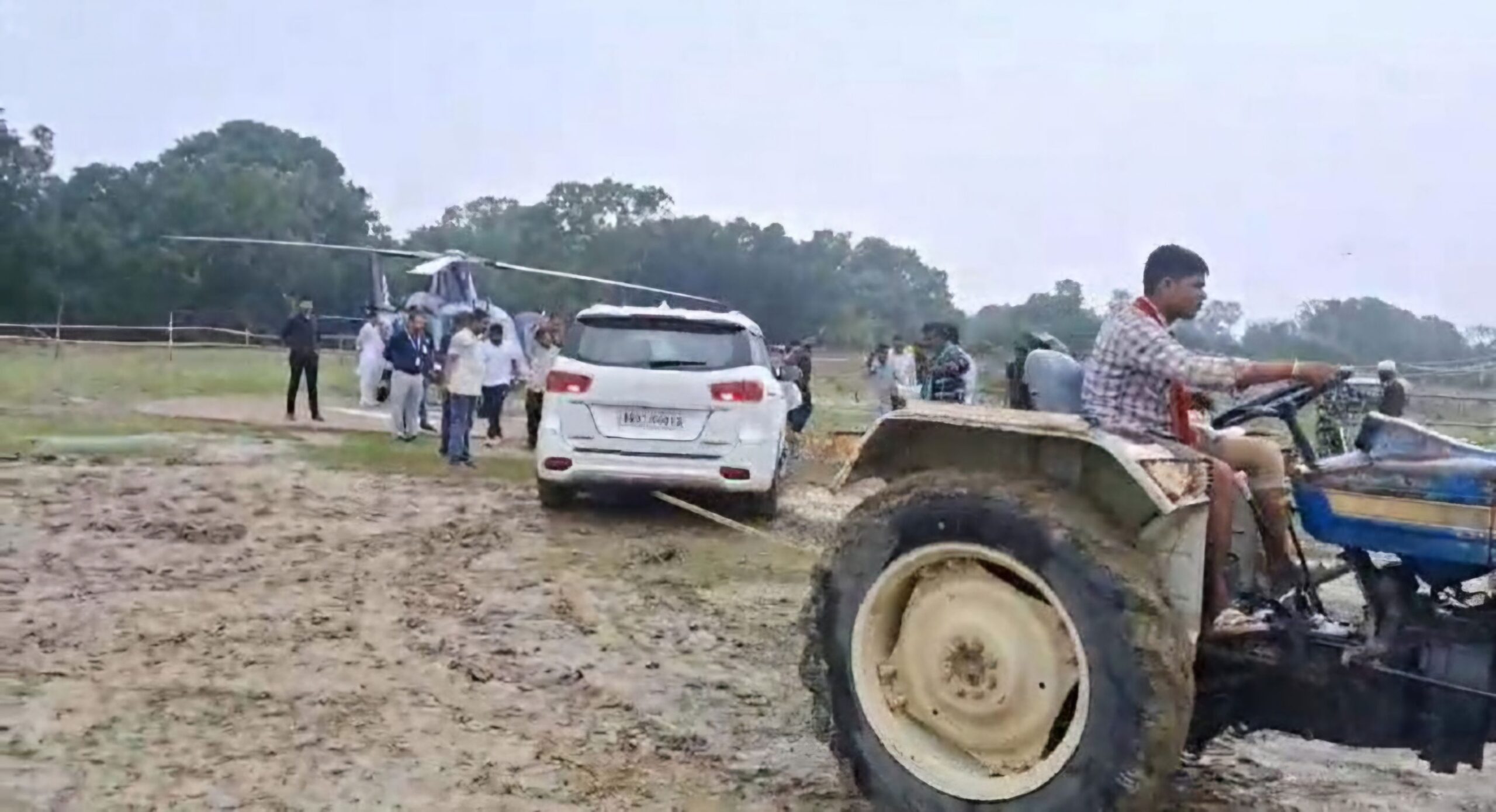 खगड़िया के कीचड़ में फंसी तेजस्वी यादव की गाड़ी, हेलीपैड पर बुलाना पड़ा ट्रैक्टर