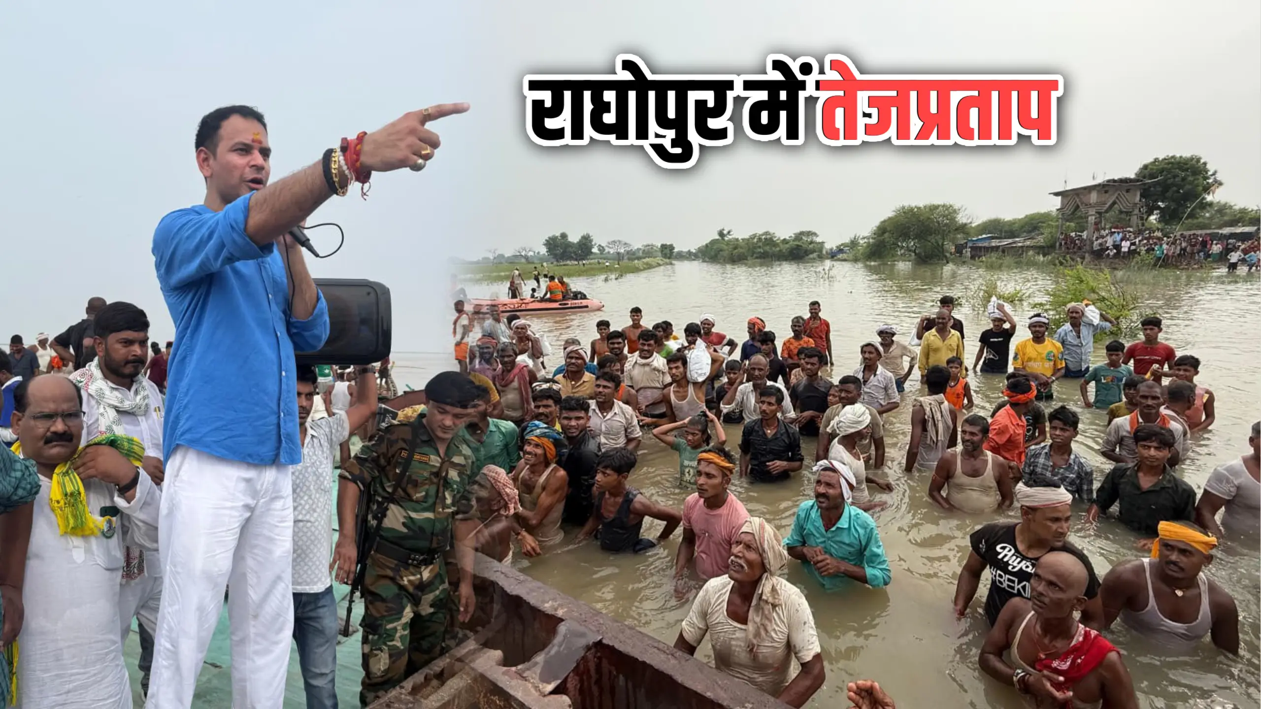 एक्स पर तेज प्रताप ने लिखा कि आज वैशाली जिले के राघोपुर विधानसभा अंतर्गत विदुपुर ब्लॉक के विभिन्न पंचायत पूरे तरीके से बाढ़ से प्रभावित हो चुका है। इस विधानसभा क्षेत्र के अधिकांश पंचायत और गांव बाढ़ के कारण डूब चुके हैं, लेकिन भाजपा नीतीश सरकार द्वारा और यहां के सांसद और विधायक द्वारा भी किसी प्रकार की कोई सहायता नहीं पहुंचाई जा रही है। जब मुझे राघोपुर क्षेत्र के स्थानीय लोगों ने मुझे अपनी समस्या से अवगत करवाया तब मुझसे रुका नहीं गया और आज हमने खुद जाकर बाढ़ पीड़ित परिवारों से मुलाकात किया और उन्हें राहत सामग्री और मेडिकल सहायता देने का काम किया।