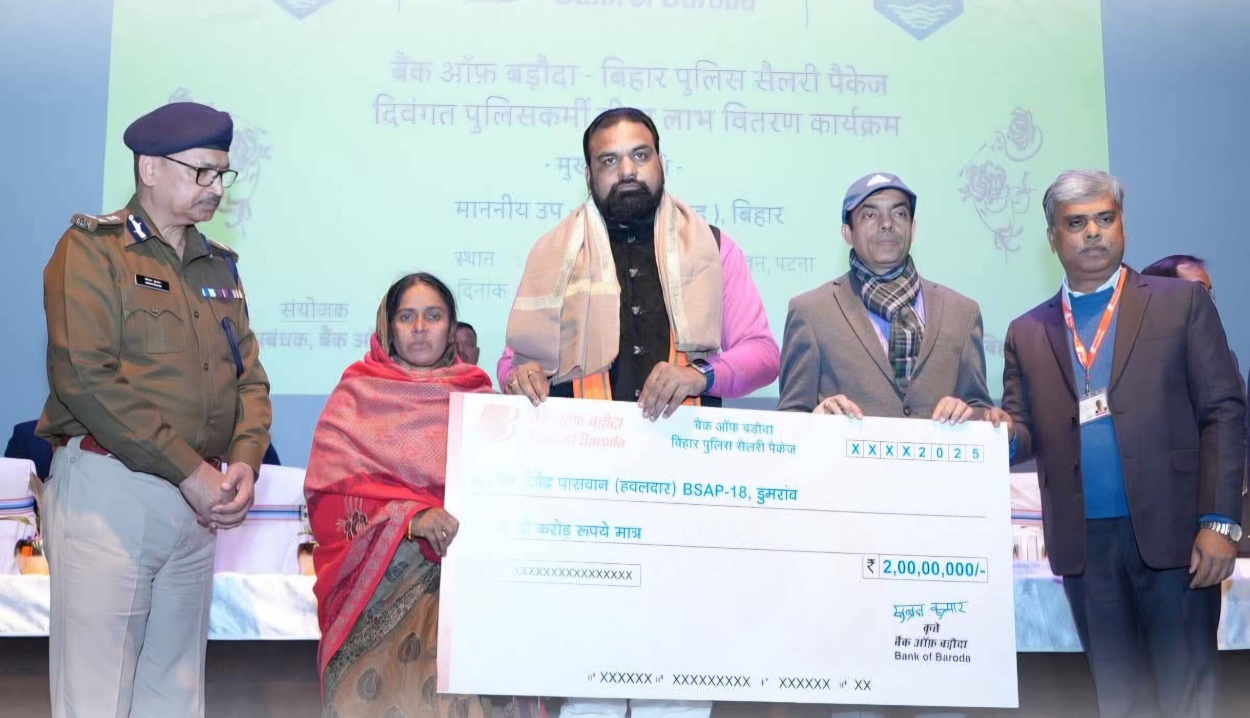 बिहार पुलिस के दिवंगत कर्मियों के आश्रितों को आर्थिक संबल प्रदान करने के उद्देश्य से बिहार पुलिस सैलरी पैकेज बीमा लाभ वितरण कार्यक्रम का आयोजन सरदार पटेल भवन स्थित ऑडिटोरियम में किया गया। कार्यक्रम में उपमुख्यमंत्री सह गृह मंत्री सम्राट चौधरी उपस्थित रहे। इस अवसर पर बैंक ऑफ बड़ौदा द्वारा 36 दिवंगत पुलिसकर्मियों के परिजनों को लगभग 25 करोड़ 65 लाख रुपए की बीमा राशि प्रदान की गई।