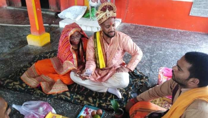 भारत भ्रमण पर आए अमेरिकी मूल के युवा कपल को भारतीय संस्कृति ऐसी भा गई कि दोनों ने हिन्दू रीति-रिवाज से बाबा भोलेनाथ को साक्षी मानकर त्रिलोचन महादेव के मंदिर में शादी कर ली. इतना ही नहीं दोनों ने शादी से पहले वाराणसी के एक ज्योतिष से अपनी जन्मकुंडली भी बनवाई. अमेरिकी मुस्लिम युवक-युवती के हिन्दू परम्परा के अनुसार शादी करने की चर्चाएं हो रही हैं.