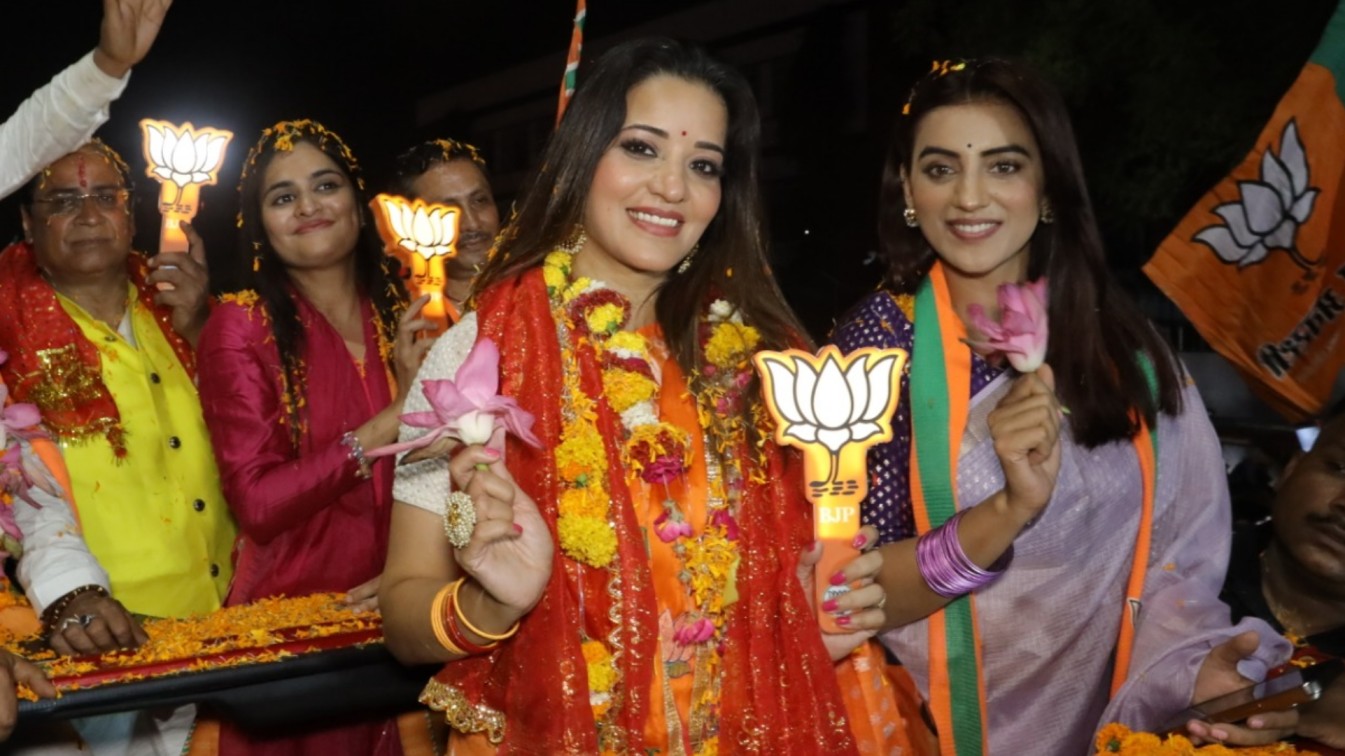 अक्षरा सिंह और मोनालिसा ने भगवा पटका भी धारण किए हुए थे. हाथ में कमल के निशान का हैंड बिल लेकर उन्होंने जनता से वोट देने की अपील की. पर्पल साड़ी में अक्षरा सिंह बेहद खूबसूरत लग रही थीं. वहीं मोनालिसा ने ओरेंज कलर की बनारसी साड़ी पहनी हुई थी. दोनों साथ में जनता के बीच प्रचार करती नजर आईं. दोनों अभिनेत्रियां को देखने के लिए जबरदस्त भीड़ जमा हुई थी. अक्षय सिंह की सोशल मीडिया पर भी जबरदस्त फैन-फॉलोइंग है. उनके रील वीडियो जमकर वायरल होते हैं. वहीं मोनालिसा के हॉट लुक्स फैंस के बीच वायरल होते रहते हैं.