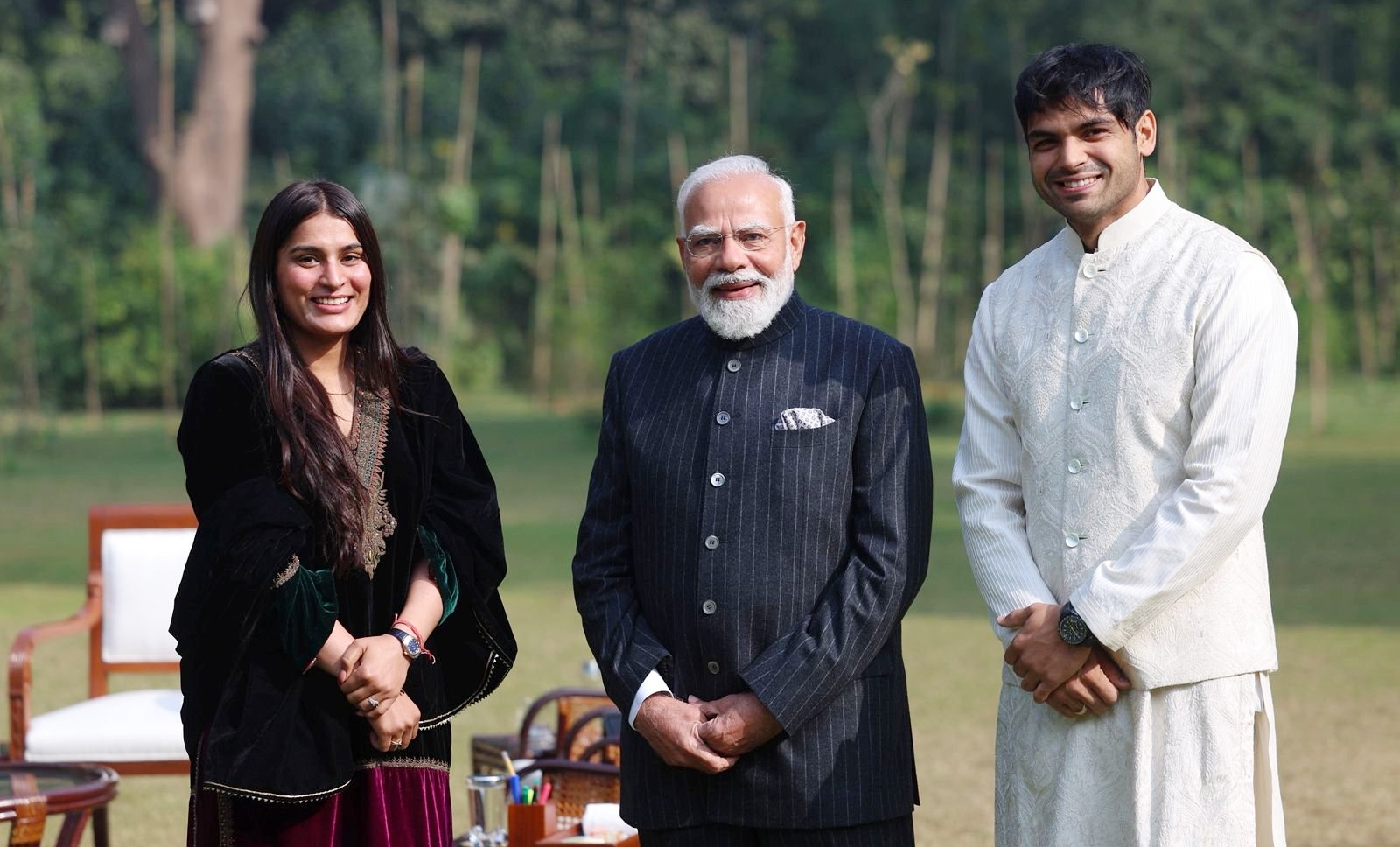 दो बार के ओलंपिक पदक विजेता नीरज चोपड़ा ने मंगलवार को प्रधानमंत्री नरेंद्र मोदी से उनके आधिकारिक आवास पर मुलाकात की। नीरज के साथ इस दौरान पत्नी हिमानी मोर भी मौजूद रहीं। नीरज ने इस साल पूर्व टेनिस खिलाड़ी हिमानी से शादी की थी और वह फिलहाल ब्रेक पर चल रहे हैं। पीएम मोदी ने एक्स पर नीरज के साथ मुलाकात की तस्वीरें साझा कीं। उन्होंने लिखा, ‘नीरज चोपड़ा और उनकी पत्नी हिमानी मोरी के साथ आज सात, लोक कल्याण मार्ग पर मुलाकात की। हमने इस दौरान खेल सहित विभिन्न मुद्दों पर बात की।’