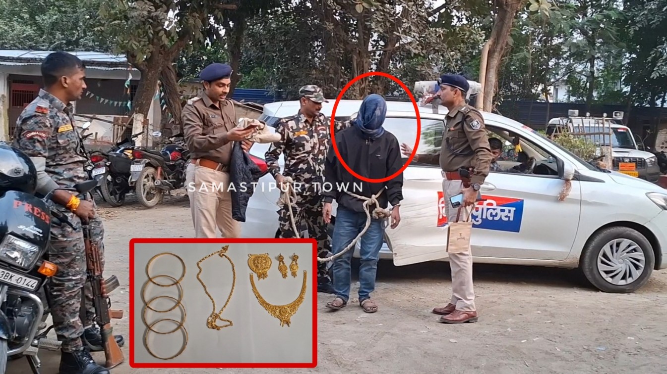 समस्तीपुर: बैंक ऑफ महाराष्ट्र लूटकांड मामले में 1 लाख का ईनामी बदमाश 7 लाख रुपये के आभूषण के साथ गिरफ्तार