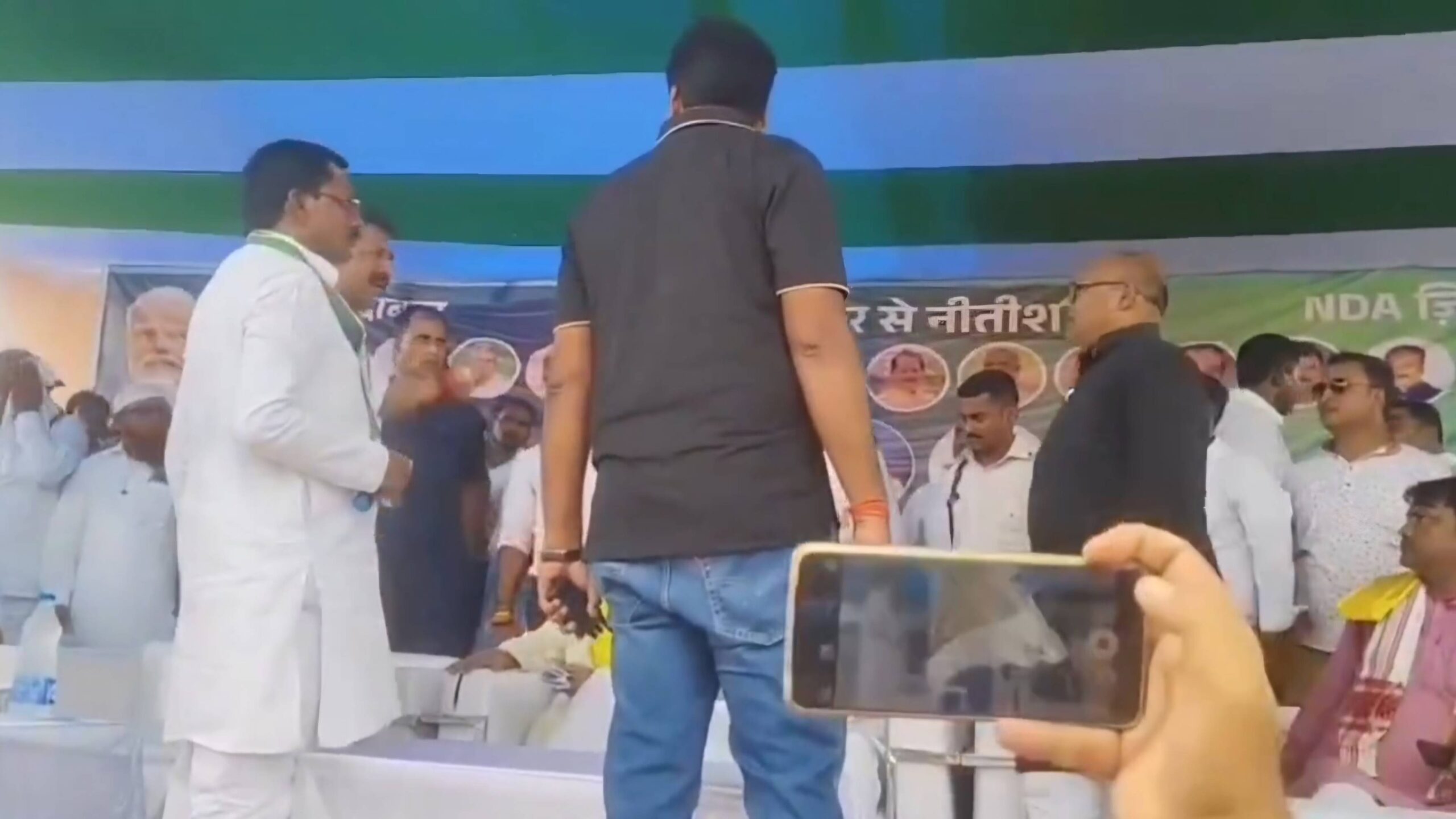 जैसे ही केन्द्रीय मंत्री रामनाथ ठाकुर व एनडीए गठबंधन के दलों के नामित प्रतिनिधि मंच पर पहुंचे कि पूर्व विधान पार्षद संजय प्रसाद और चकाई के विधायक व मंत्री सुमित कुमार सिंह के बीच बहस शुरू हो गई। यह देखकर दोनों के समर्थक मंच पर चढ़ गये और एक दूसरे पर टूट पड़े। देखते ही देखते मंच रणक्षेत्र में तब्दील हो गया। स्थिति को नियंत्रित करने में पुलिस प्रशासन के पसीने छूट गए।