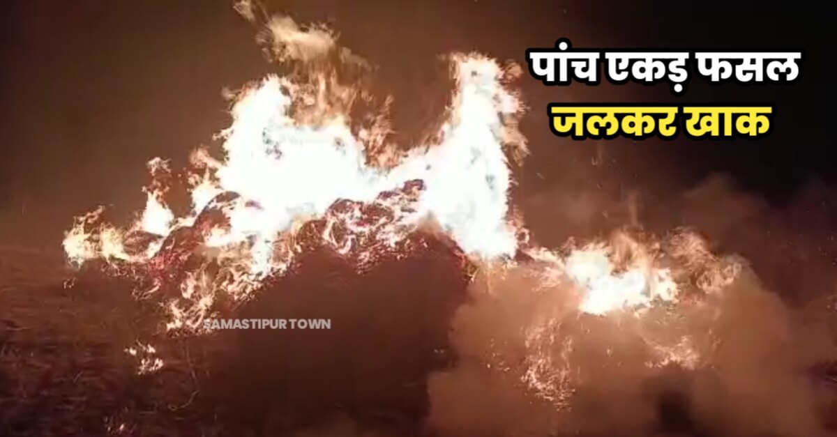 समस्तीपुर/हसनपुर :- समस्तीपुर जिला के हसनपुर प्रखंड अंतर्गत दुधपुरा गांव में बीते देर रात्रि अचानक गेहूं के खेत में आग लगने से करीब पांच एकड़ में लगी गेहूं की फसल जलकर पूरी तरह से खाक हो गयी।