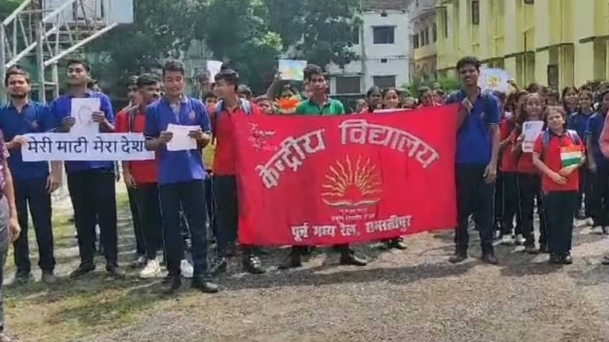समस्तीपुर :- आजादी का अमृत महोत्सव “मेरी माटी मेरा देश” के अंतर्गत गुरुवार केंद्रीय विद्यालय पूर्व मध्य रेल समस्तीपुर में तिरंगा यात्रा एवं रंगोली प्रतियोगिता का आयोजन किया गया। इस अभियान का मुख्य उद्देश्य स्वतंत्रता सेनानी और आज़ादी के गुमनाम वीरों को श्रद्धांजलि देना और लोगों को इस सन्दर्भ में जागरूक बनाना है। इस अवसर पर विद्यालय के छात्र-छात्राओं ने स्कूल से रेलवे कॉलोनी तक तिरंगा यात्रा का आयोजन किया। इस दौरान बच्चे वीरों का जयघोष करते हुए अपने कदम बढ़ा रहे थे। मौके पर बच्चों ने शहीदों के पद्चिन्हों पर चलने की कसम खायी।