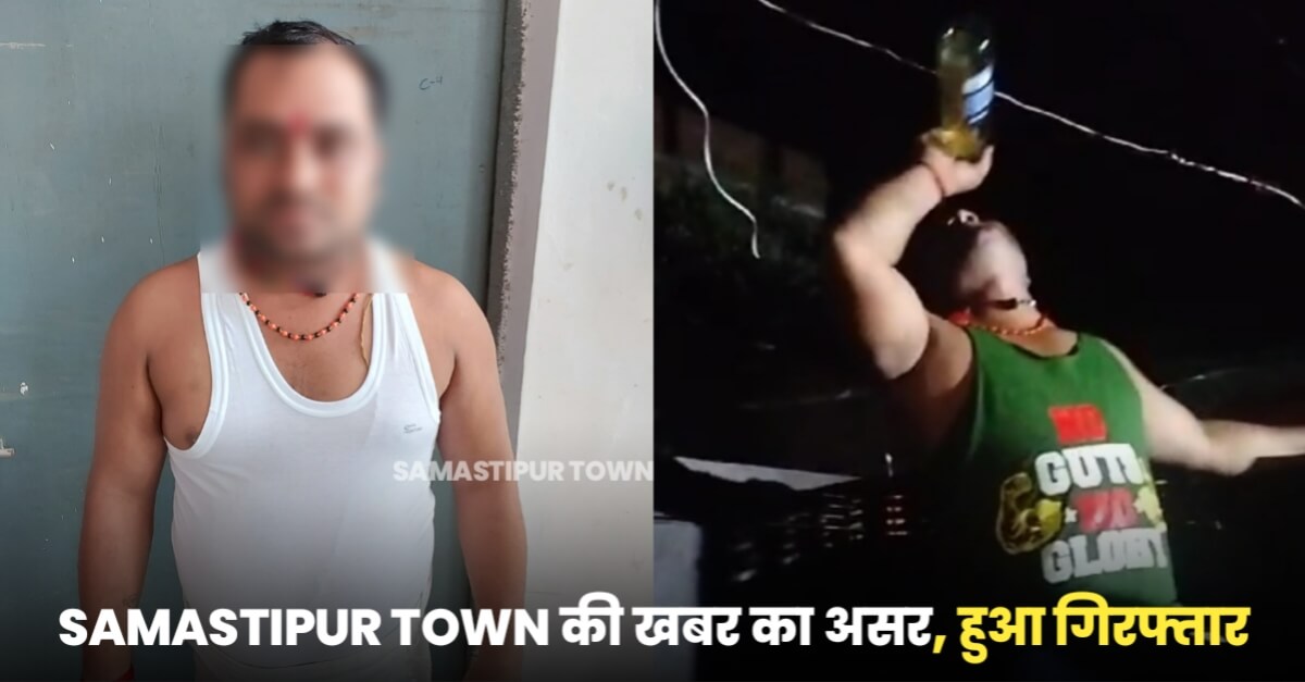 समस्तीपुर :- पूर्ण शराबबंदी वाले बिहार में शराब पीने और पिलाने के मामले नहीं रुक रहे हैं। विभिन्न स्थानों पर पुलिस और उत्पाद विभाग की टीम छापेमारी कर रही है ताकि शराब माफियाओं पर नकेल कसा जा सके और लोगों को शराब से दूर रखा जा सके। लेकिन इन तमाम प्रयासों को जनप्रतिनिधि ही नाकाम करते नजर आ रहे हैं। ताजपुर थाना क्षेत्र का ऐसा ही एक वीडियो वायरल हुआ है। हालांकि Samastipur Town मीडिया पर गुरुवार की शाम खबर चलने के बाद पुलिस हरकत में आई है और छापेमारी कर शुक्रवार की सुबह वीडियो में दिखाई दे रहे उक्त शक्स को गिरफ्तार कर लिया।