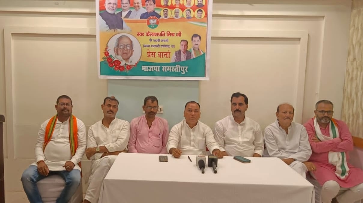 समस्तीपुर :- भाजपा के संस्थापक सदस्य और बिहार भाजपा के भीष्म पितामह स्व. कैलाशपति मिश्र की 100 वीं जयंती को बिहार भाजपा जन्म शताब्दी वर्षगांठ के रूप में मनाएगी। इसको लेकर मंगलवार को शहर में भाजपा जिलाध्यक्ष उपेन्द्र कुमार कुशवाहा की अध्यक्षता में आयोजित कार्यक्रम को संबोधित करते हुए भाजपा के प्रदेश प्रवक्ता पीयूष शर्मा ने कहा कि 5 अक्टूबर को उनकी जयंती के अवसर पर पटना के बापू सभागार में एक सभा का आयोजन किया गया है। जिसमें उनके द्वारा किए गए कार्यों को प्रदर्शनी लगाकर लोगों को जानकारी देने का काम किया जाएगा।
