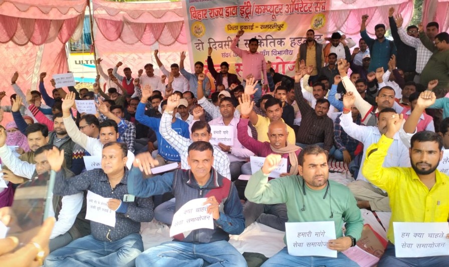 विभागीय सेवा में समायोजन की मांग को लेकर समस्तीपुर कलेक्ट्रेट के सामने डाटा इंट्री ऑपरेटर संघ ने दिया धरना