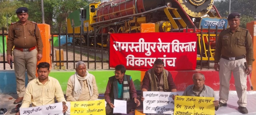 उजियारपुर से सरायरंजन होते हुए पटोरी तक नये रेल लाईन निर्माण करने समेत विभिन्न मांगों को लेकर रेल विस्तार- विकास मंच ने दिया धरना