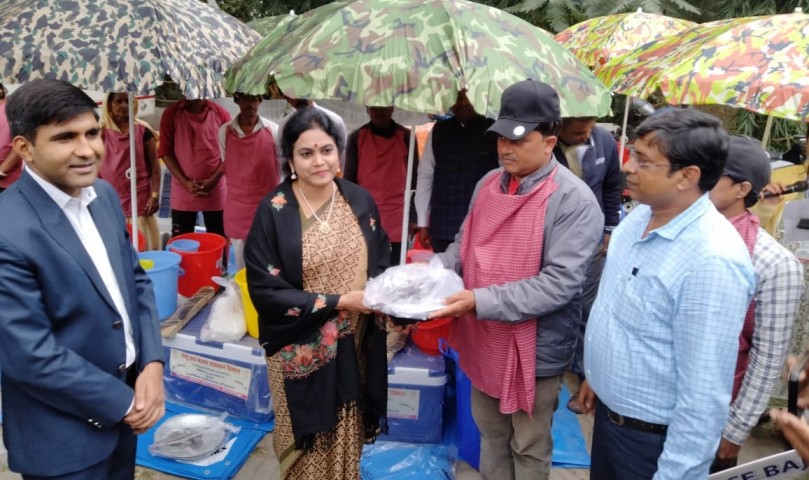 समस्तीपुर :- समाहरणालय परिसर में बुधवार को मुख्यमंत्री मत्स्य विपणन योजना एवं पीएमएमएसवाई योजना के तहत आटो, साईकिल, आइस बॉक्स, हांडी, तराजू, बाल्टी, मग, छाता, बर्दी समेत मत्स्य विपणन कीट पशु एवं मत्स्य संसाधन विभाग के प्रधान सचिव डॉ. एन विजयालक्ष्मी एवं जिलाधिकारी योगेंद्र सिंह ने संयुक्त रूप से मछुआरे समाज के बीच वितरण किया। कार्यक्रम को संबोधित करते हुए प्रधान सचिव डॉ. एन विजयलक्ष्मी ने कहा कि मछली के उत्पादन पर बिहार आत्मनिर्भर हो गया है।