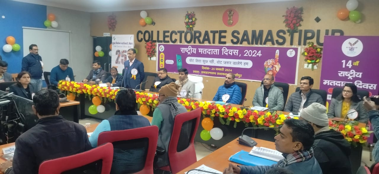 14वें राष्ट्रीय मतदाता दिवस पर समस्तीपुर जिला निर्वाचन पदाधिकारी सह डीएम योगेंद्र सिंह की अध्यक्षता में कलेक्ट्रेट सभागार में समारोह का आयोजन किया गया#Samastipur #NationalVotersDay @DM_Samastipur pic.twitter.com/hbmayyxVHM