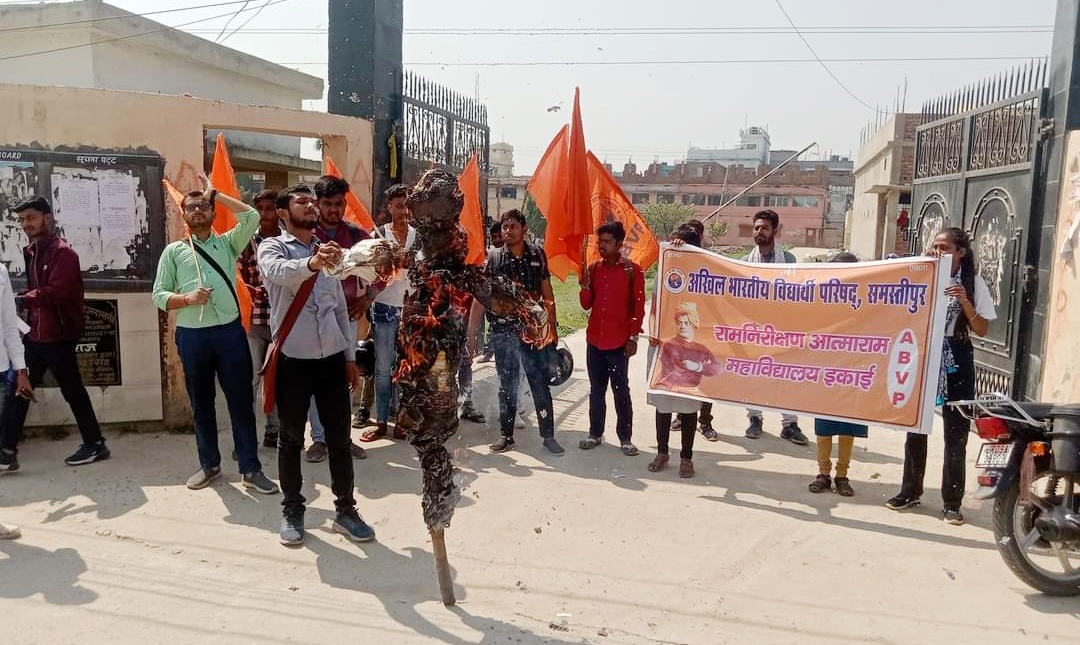 समस्तीपुर :- अखिल भारतीय विद्यार्थी परिषद ने RNAR कॉलेज के मुख्य द्वार पर बंगाल के मुख्यमंत्री ममता बनर्जी का पुतला दहन किया गया। इस दौरान वक्ताओं ने कहा कि अखिल भारतीय विद्यार्थी परिषद के द्वारा लगातार संदेशखाली की महिलाओं को न्याय दिलाने को लेकर पूरे भारत में आंदोलन चलाया जा रहा है। उसी क्रम में सोमवार को सिलीगुड़ी में आक्रोश मार्च निकाल रहे परिषद के कार्यकर्ताओं पर ममता बनर्जी के पुलिस के द्वारा लाठी चार्ज किया गया है।