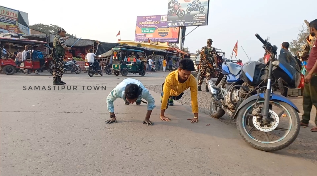 समस्तीपुर :- अगर आप जल्दबाजी में हैं और बिना हेलमेट पहने बाइक से निकल गये तो आपको जुर्माना नहीं देने पर पुश-अप करना पड़ सकता है। करना क्या पड़ सकता है अनेक युवकों ने ऐसा किया भी है। ऐसा ही एक मामला समस्तीपुर शहर के मगरदही घाट पर देखने को मिला है।
