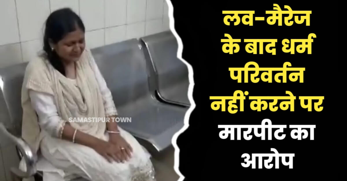 समस्तीपुर :- समस्तीपुर जिले के मुफ्फसिल थाना क्षेत्र अंतर्गत मोहनपुर रोड वार्ड संख्या-38 में पावर हॉउस के समीप रविवार की शाम कथित तौर पर जबरन धर्म परिवर्तन को लेकर कुछ लोगों द्वारा एक महिला को मारपीट कर गंभीर रूप से घायल कर दिया गया। जिसके बाद उसे इलाज के लिए सदर अस्पताल में भर्ती कराया गया। सदर अस्पताल में पहुंची महिला ने बताया कि कुछ वर्ष पूर्व उसने एक मुस्लिम लड़के से शादी की थी। उसके हिंदू होने पर उसके पति को कोई एतराज नहीं है लेकिन कुछ लोग जबरन उसका धर्म परिवर्तन करवाने को लेकर उसके और उसके पति के ऊपर काफी समय से दबाव बना रहे थे।