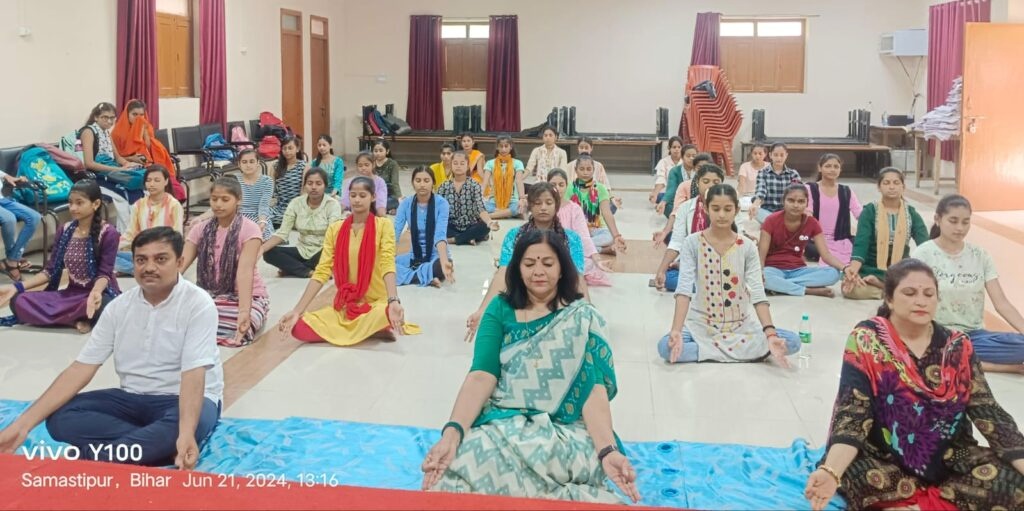 समस्तीपुर :- समस्तीपुर वीमेंस काॅलेज में प्रधानाचार्या प्रोफेसर सुनीता सिन्हा की अध्यक्षता में 10वां अंतर्राष्ट्रीय योग दिवस मनाया गया। इस अवसर पर प्रधानाचार्य प्रो. सिन्हा ने योग के महत्त्व को रेखांकित करते हुए कहा कि योग भारतीय संस्कृति से जुड़ा है और योग का अभ्यास शरीर को रोगमुक्त रखता है और मन को शांति देता है।