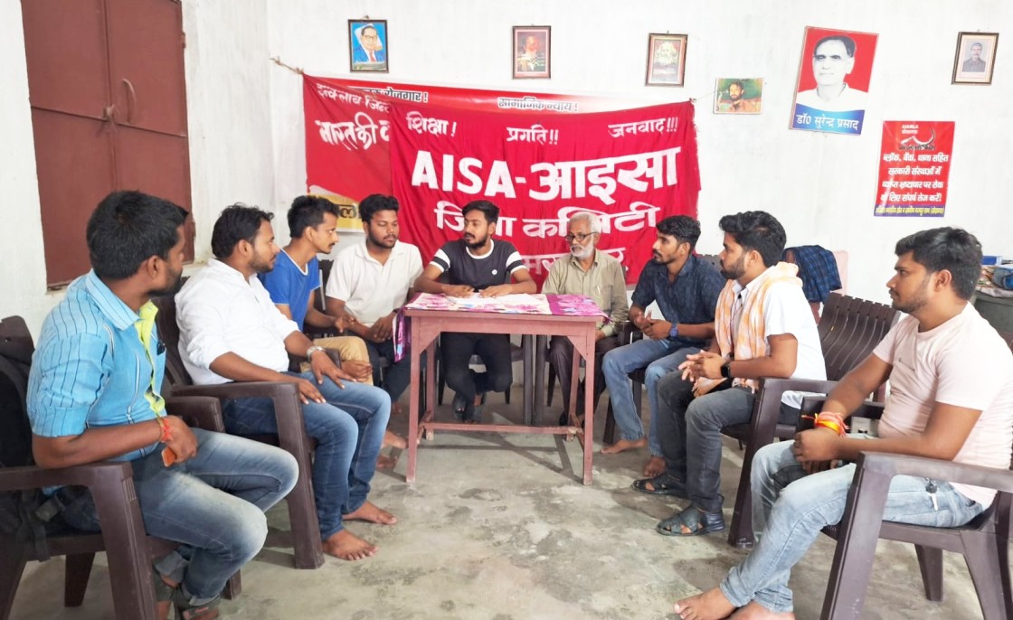 जिला उपाध्यक्ष दीपक यदुवंशी ने कहा नीट 2024 परीक्षा को रद्द कर पुन: लेना चाहिए तभी अभ्यर्थी का प्रतियोगी परीक्षा में विश्वास बना रहेगा। भाकपा माले के जिला सचिव उमेश कुमार ने कहा कि आइसा हमेशा छात्र छात्राओं की समस्या के समाधान के लिए जिला में अग्रणी भूमिका निभाता है। इसे और आगे बढ़ाने और संगठन को विस्तार देने की जरूरत है। बैठक में अगस्त में आइसा के राज्य परिषद् की बैठक कराने और जिला में संगठन को और तेजी से विस्तार करने की नीति बनी। मौके पर कार्यालय सचिव राजू झा, आइसा जिला उपाध्यक्ष अनिल कुमार, अभिषेक चौधरी, संजीव कुमार (गोलू) उपस्थित आदि उपस्थित थे।