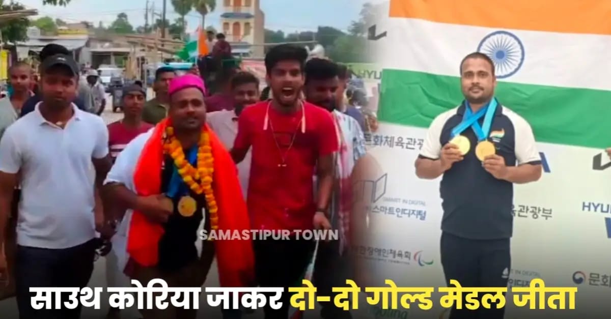 साउथ कोरिया से गोल्ड मेडल जीतकर अपने घर समस्तीपुर पहुंचे अंतरराष्ट्रीय युवा पैराशूटर संजीव का हुआ भव्य स्वागत