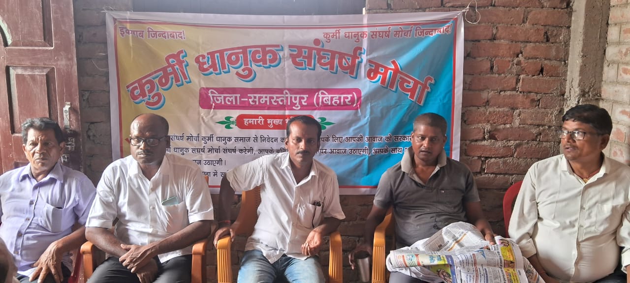 समस्तीपुर/सरायरंजन :- गंगापुर पंचायत में गुरुवार को कुर्मी-धानुक संघर्ष मोर्चा की बैठक में कुर्मी- धानुक को अति पिछ़ड़ा में शामिल करने की सरकार से मांग की गयी। वक्ताओं ने कुर्मी व धानुक जाति के लोगों की उपेक्षा पर रोष भी जताया। बैठक की अध्यक्षता रामसागर राय ने की। मौके पर मोर्चा के मुख्य संयोजक मनोज राय, चंदेश्वर राय, सुरेंद्र राय, रविंद्र राय, महेश राय, पंकज कुमार सिंह, अमरजीत राय, उमाशंकर राय, राहुल कुमार राय, नीरज कुमार, राहुल कुमार, राजेश राय, विकास कुमार राय आदि उपस्थित थे।