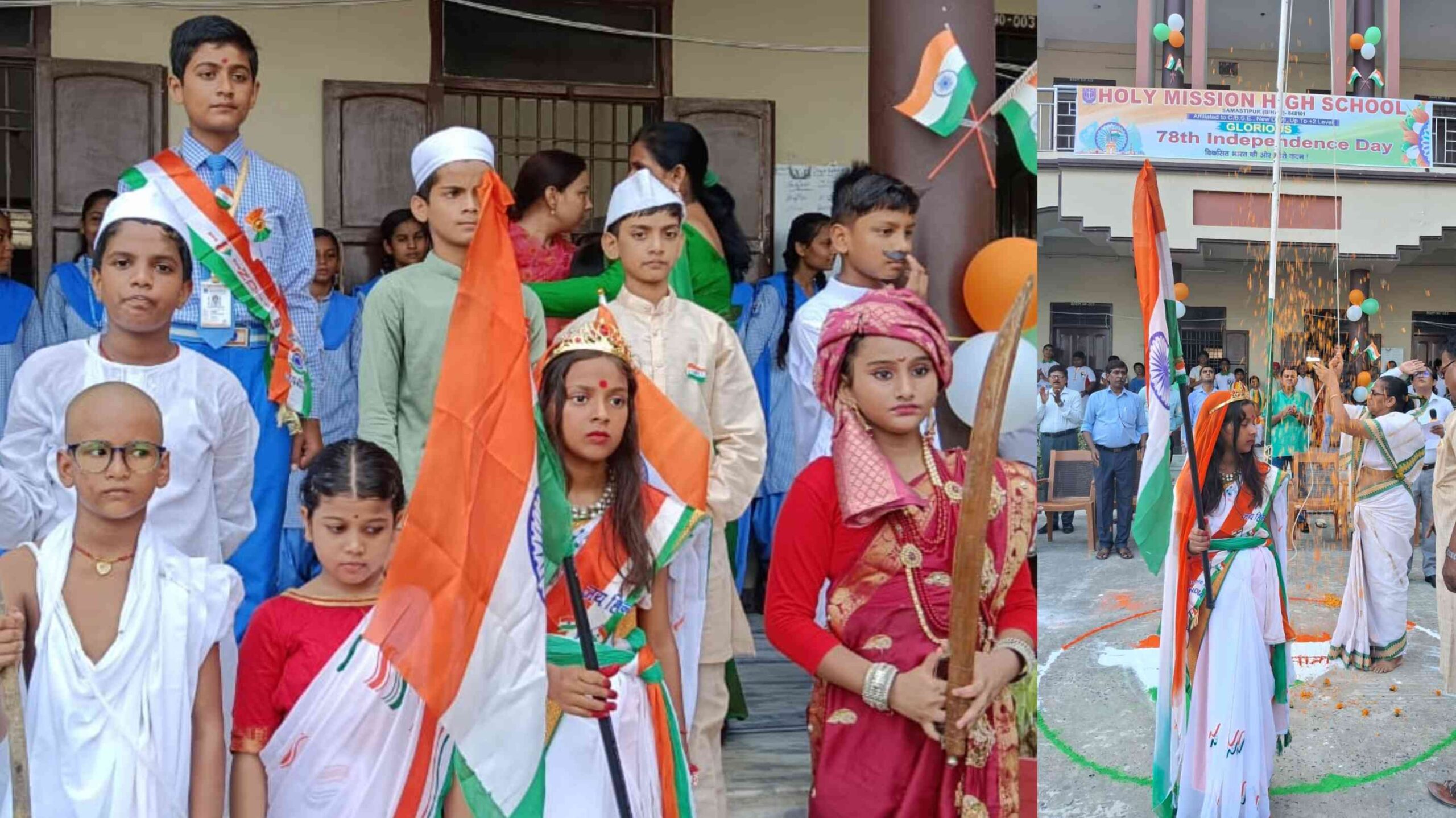 समस्तीपुर :- होली मिशन हाई स्कूल के मोहनपुर, काशीपुर, सतमलपुर एवं दलसिंहसराय की शाखा में विद्यालय की सह-संस्थापिका विभा देवी के द्वारा ध्वजारोहण किया गया। ध्वजारोहण करते हुए उन्होंनें भारत के 78वाँ स्वतंत्रता दिवस समारोह की महत्ता को प्रकाशित की। झंडोतोलन के समय विद्यालय का विशाल प्रांगण कतारबद्ध तिरंगा लिए खड़े बच्चे-बच्चियों से सुसज्जित रहा। गार्ड आफ आनर र के साथ सह-संस्थापिका का ध्वजारोहण हेतु स्वागत विभिन्न हाउसों के परिधान (टेरेसा हाउस, राजेन्दे्र हाउस, दिनकर हाउस एवं कलाम हाउस) में सजे छात्र-छात्राओं द्वारा किया गया।