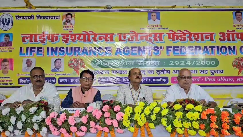 समस्तीपुर :- लाईफ इंश्योरेंस एजेंट्स फेडरेशन ऑफ इंडिया की बेगुसराय मंडल परिषद का तृतीय आम सभा सह चुनाव आज समस्तीपुर शहर के मोहनपुर स्थित यू एन पैलेस में आयोजित किया गया। इस अवसर पर फेडरेशन के राष्ट्रीय अध्यक्ष एन. गजपति राव ने केन्द्र सरकार से बीमा धारकों को प्रीमियम पर लगने वाली जीएसटी की राशि को कम करने की मांग की। बेगुसराय मंडल अध्यक्ष रणवीर सिंह की अध्यक्षता में आम सभा एवं चुनाव सम्पन्न कराया गया। पर्यावरण संरक्षक जितेंद्र कुमार ने सभी आगत अतिथियों को मधुकामिनी के पौधे से सम्मानित किया।