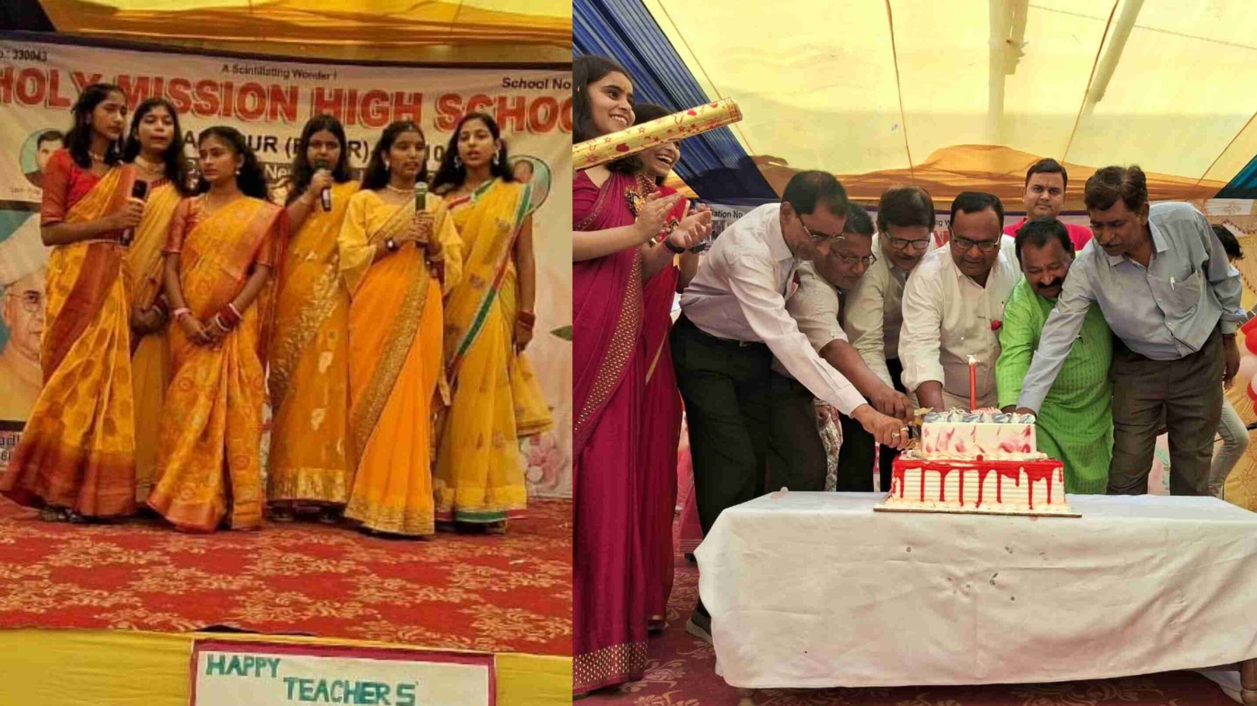 समस्तीपुर :- शहर के मोहनपुर स्थित होली मिशन हाईस्कूल के प्रांगण में शिक्षक दिवस के अवसर पर एक भव्य शिक्षक सम्मान समारोह का आयोजन किया गया। कार्यक्रम की शुरुआत निदेशक धर्मांश रंजन, प्राचार्य अमृत रंजन एवं वरिष्ठ शिक्षकों के द्वारा दीप प्रज्वलन एवं डॉ. सर्वपल्ली राधाकृष्णन एवं संस्थापक स्व० रति रंजन प्रसाद के चित्रों पर माल्यार्पण से हुआ। इस शुभ अवसर पर बच्चों द्वारा शानदार सांस्कृतिक कार्यक्रम का आयोजन किया गया। जिसमें बच्चों ने गायन, नृत्य एवं नाटक की भावमय प्रस्तुति से सबों का मन मोह लिया।