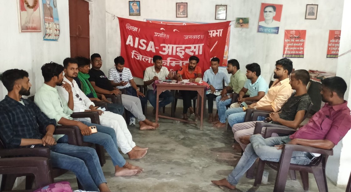 समस्तीपुर :- भाकपा माले के जिला कार्यालय में आइसा की जिला कमिटी की बैठक हुई। इसकी अध्यक्षता जिलाध्यक्ष लोकेश राज ने की व संचालन जिला सचिव सुनिल कुमार सिंह ने किया। इसमें शिक्षक भर्ती फर्जीवाड़ा तथा शिक्षक भर्ती से जुड़े दस्तावेजों का गहन जांच कर फर्जीवाड़ा करने वाले पर सख्त कार्रवाई करने व छात्रों के स्थानीय सवालों पर आंदोलन करने का निर्णय लिया गया।